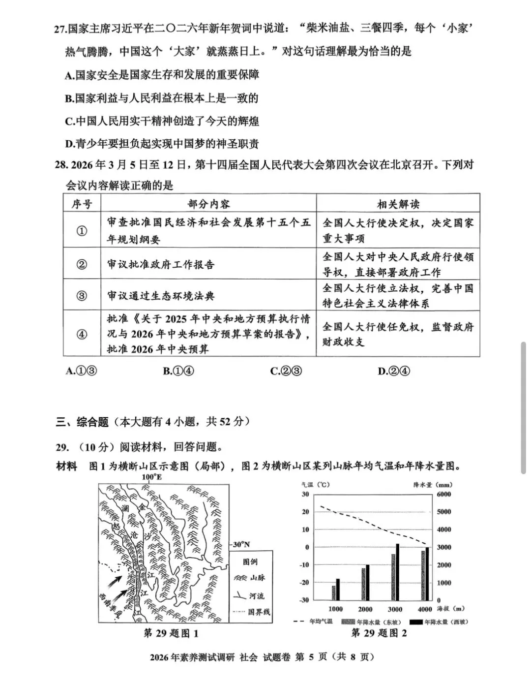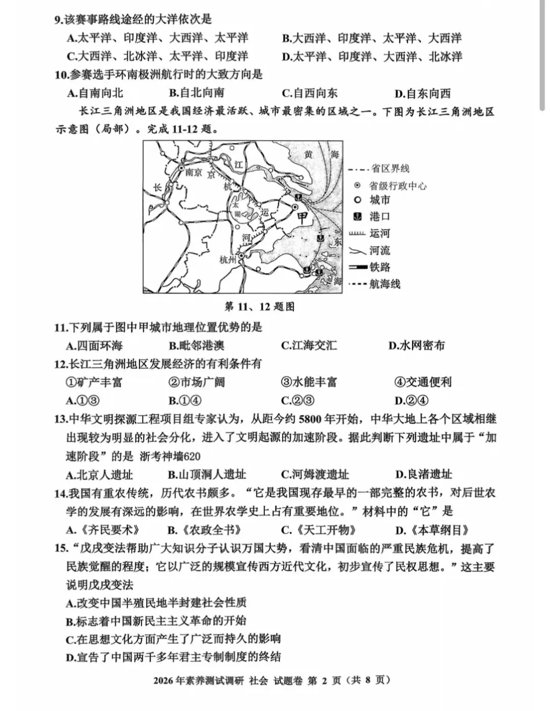试卷套题 || 2026届重庆一诊语文试题及答案(可下载)