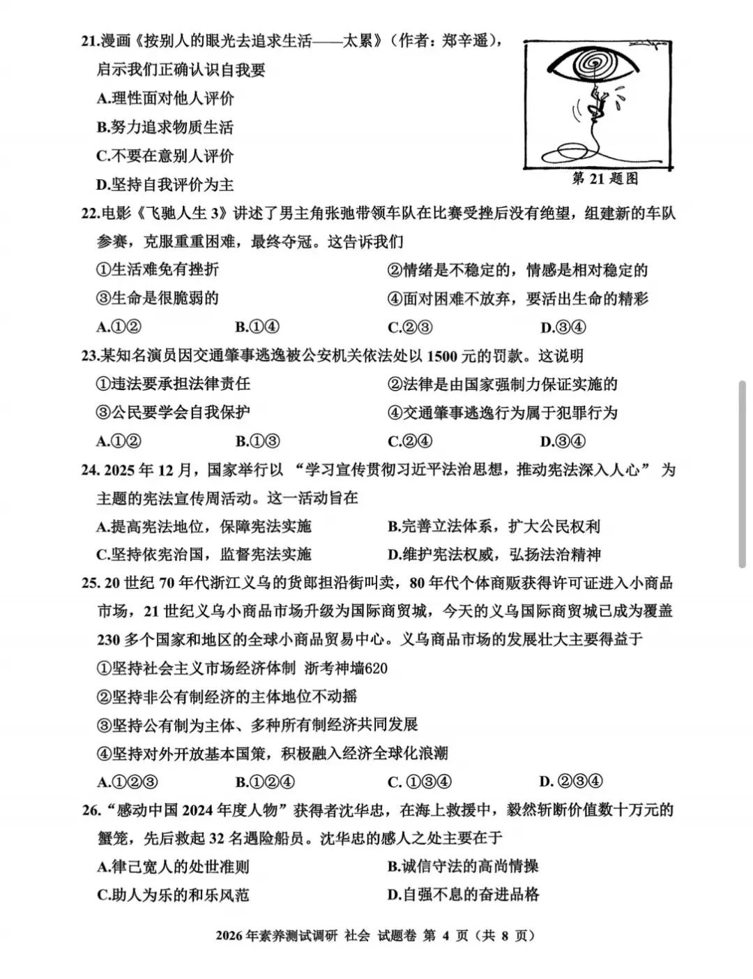 2026中考语文模拟试卷及参考答案(4)【可打印】