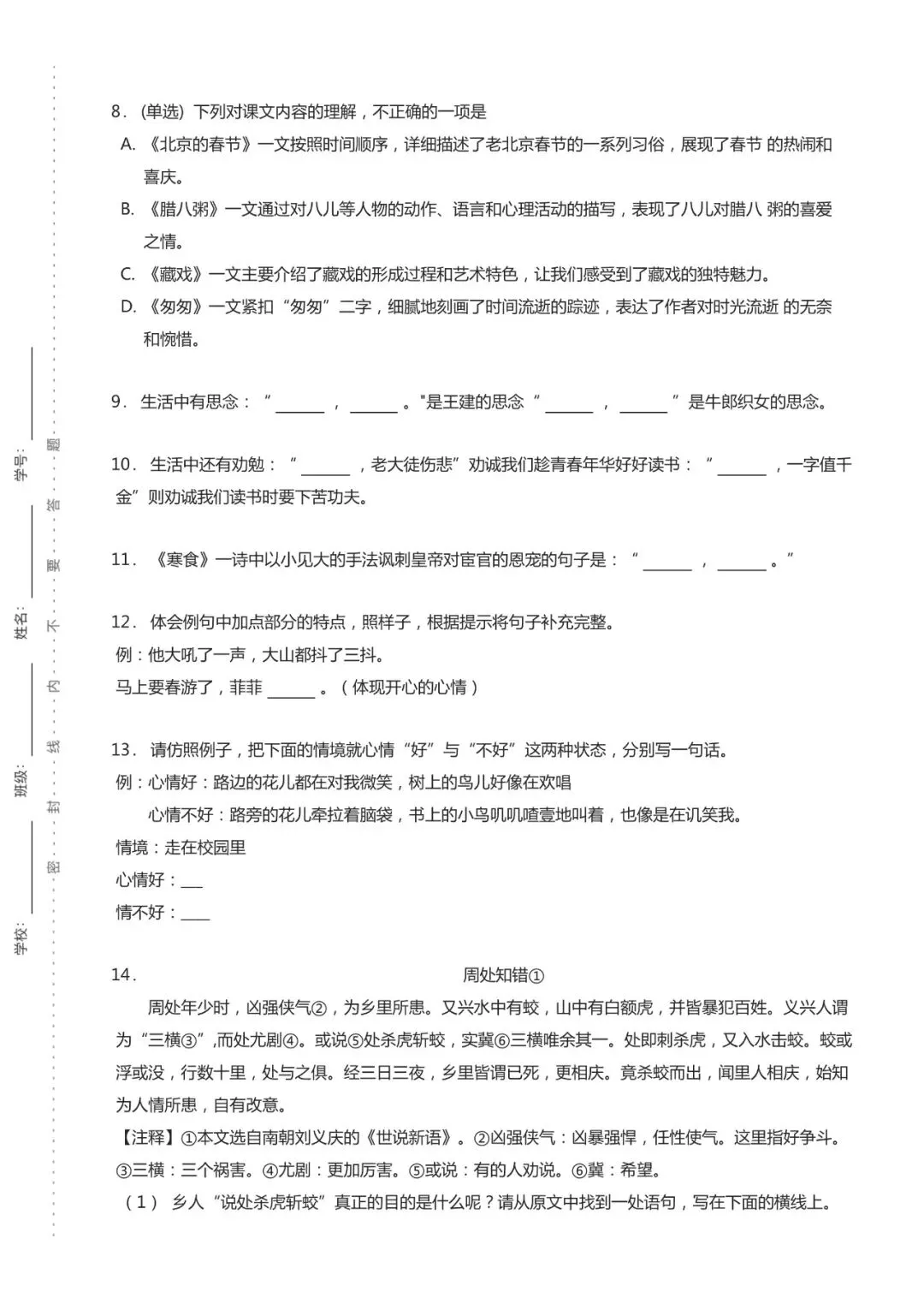 需要电子版资料,具体答案解析和各年级语文期中试卷,添加yeziwang996