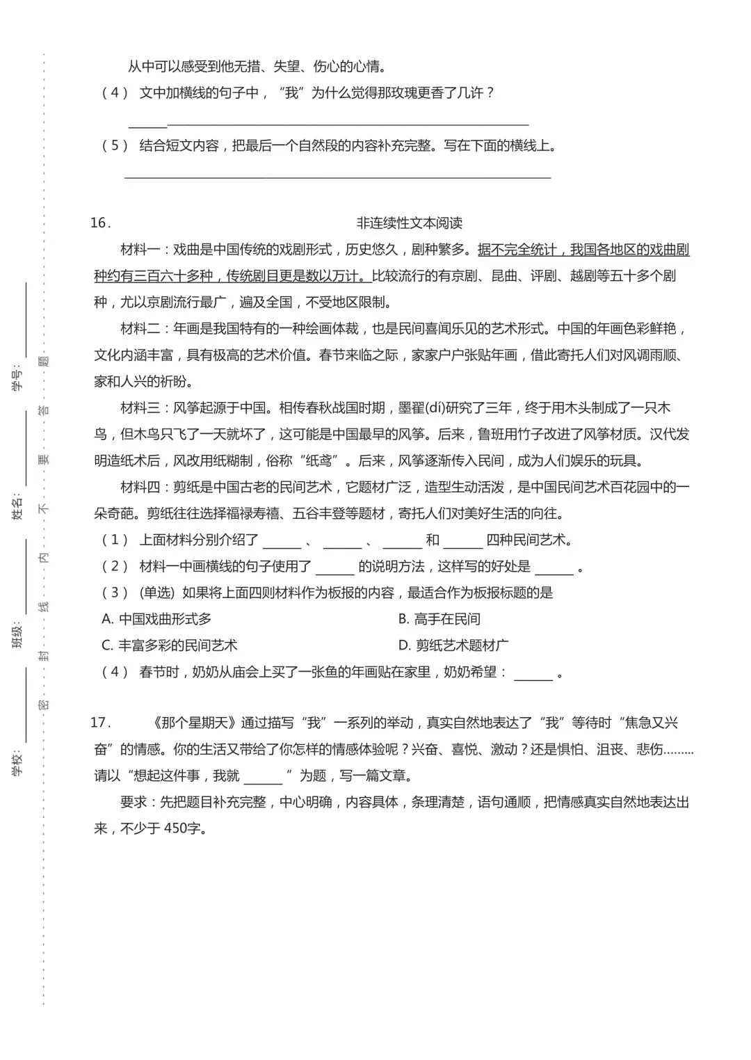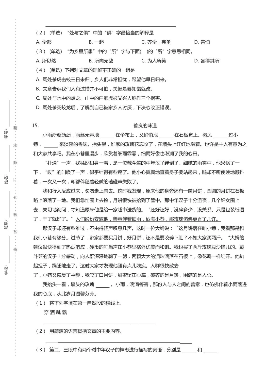 六年级下学期期中语文试卷