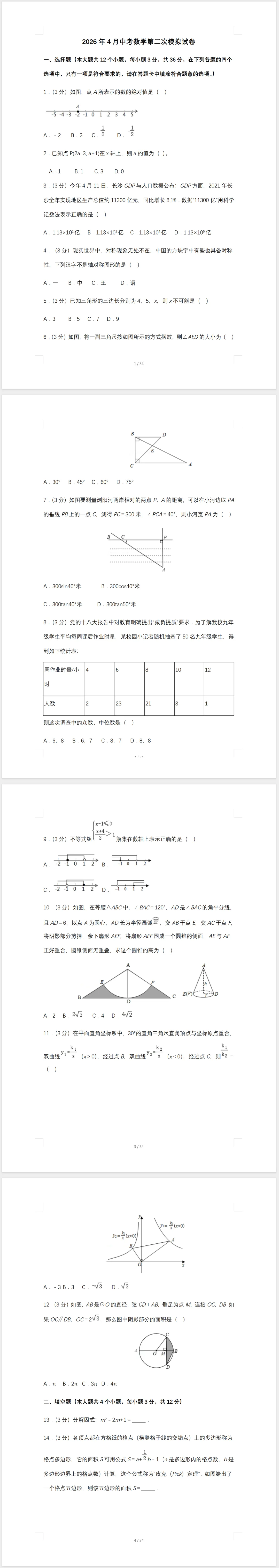 26年春新版七下数学期中考试模拟押题试卷完整版含答案,电子版可打印!