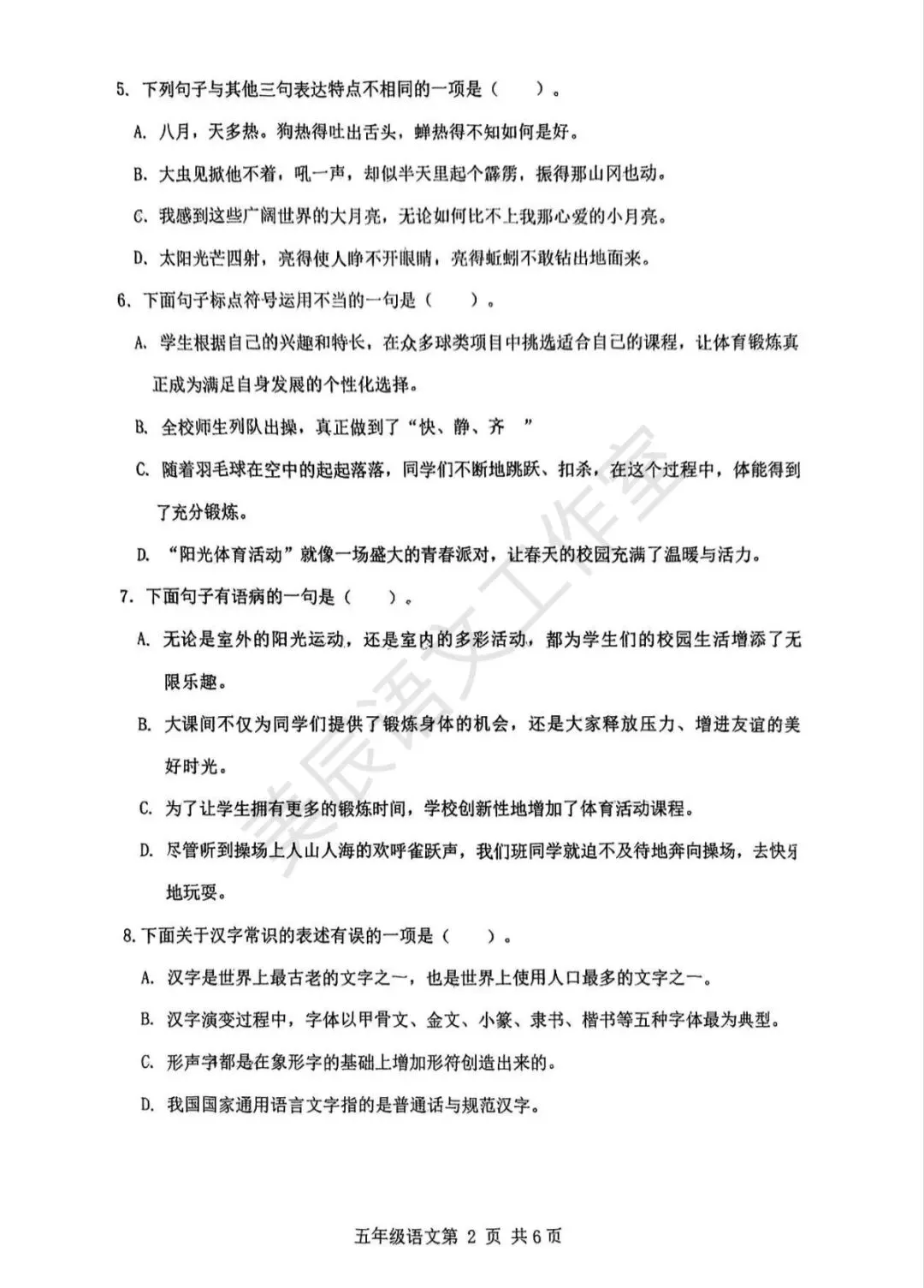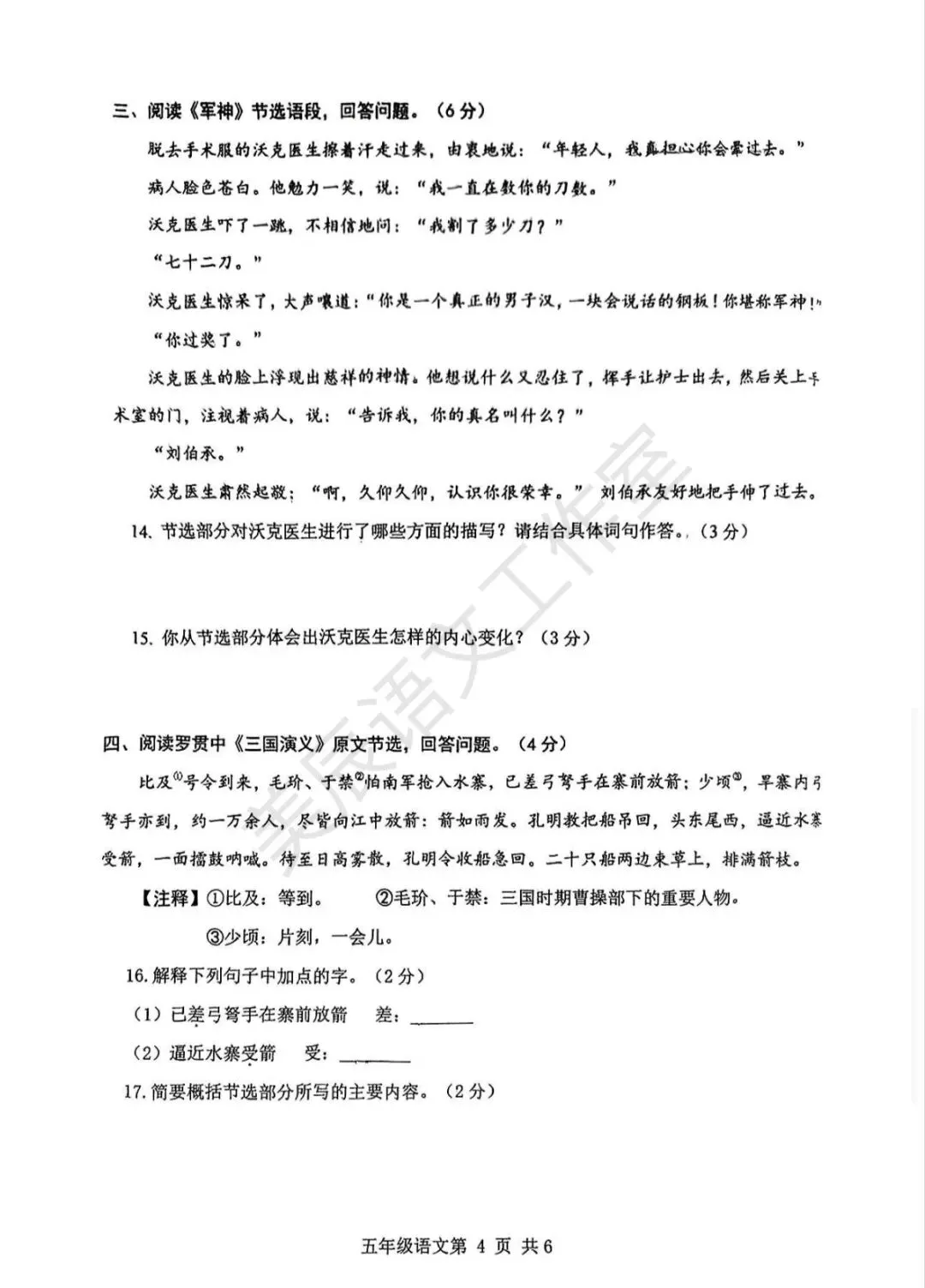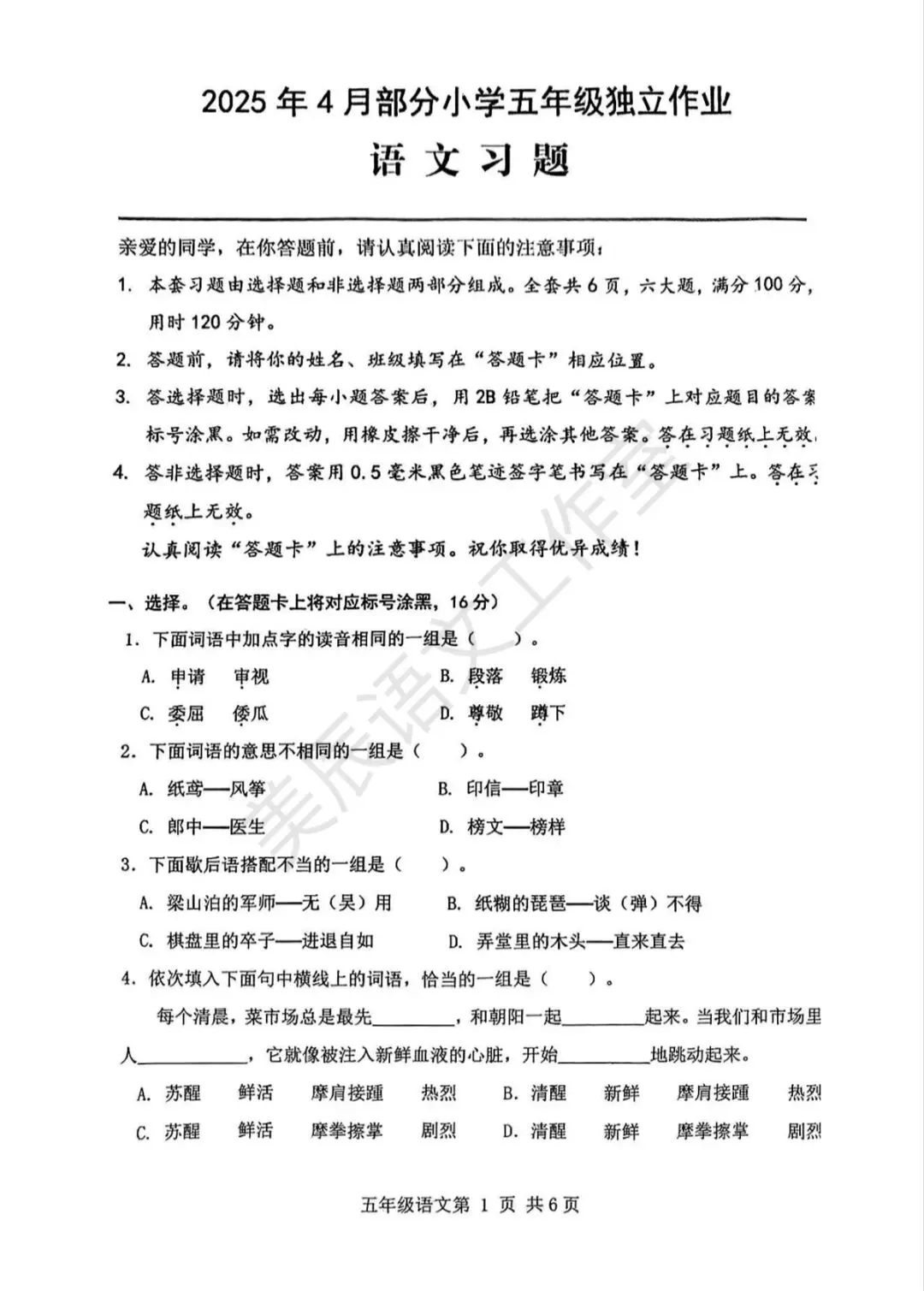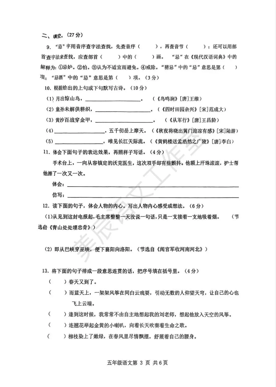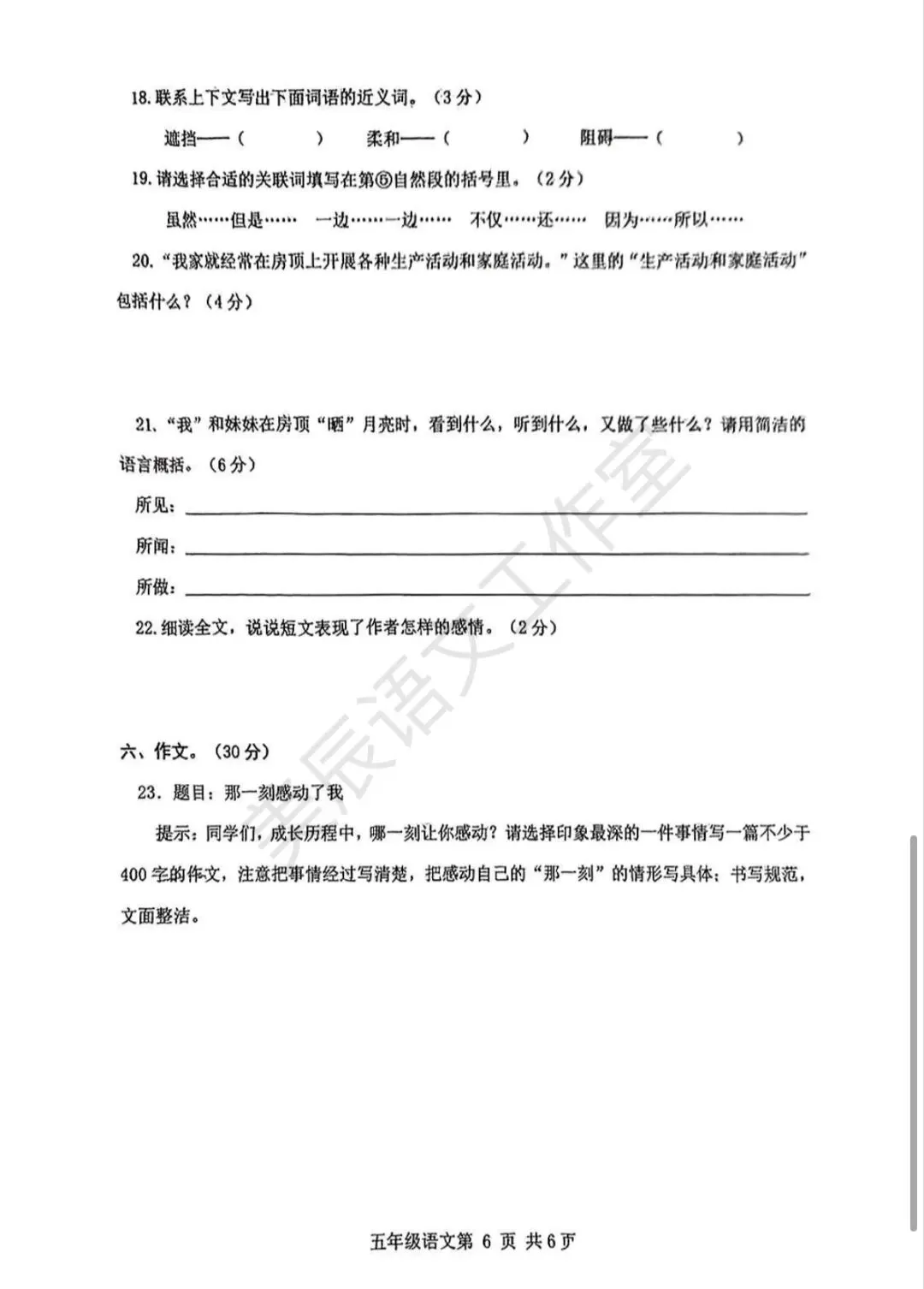 六年级下学期期中语文试卷