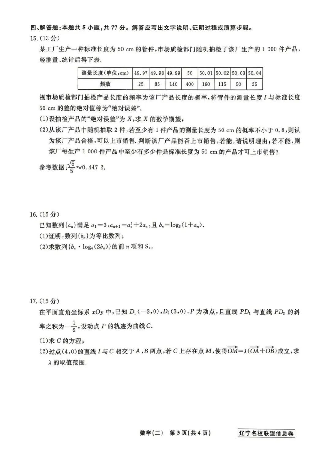 >【最新试卷】辽宁省名校联盟2026届高考数学信息卷(二)+答案