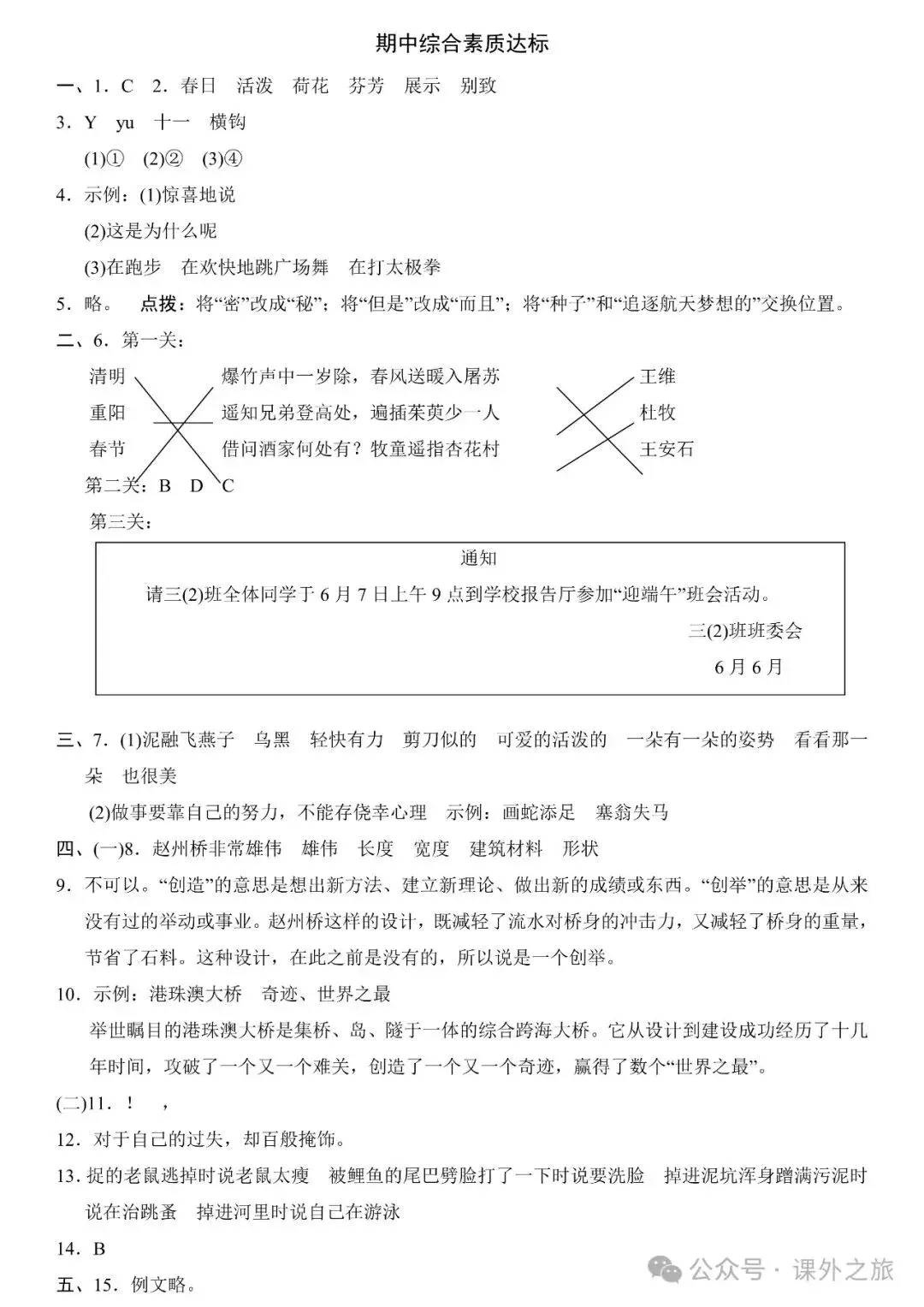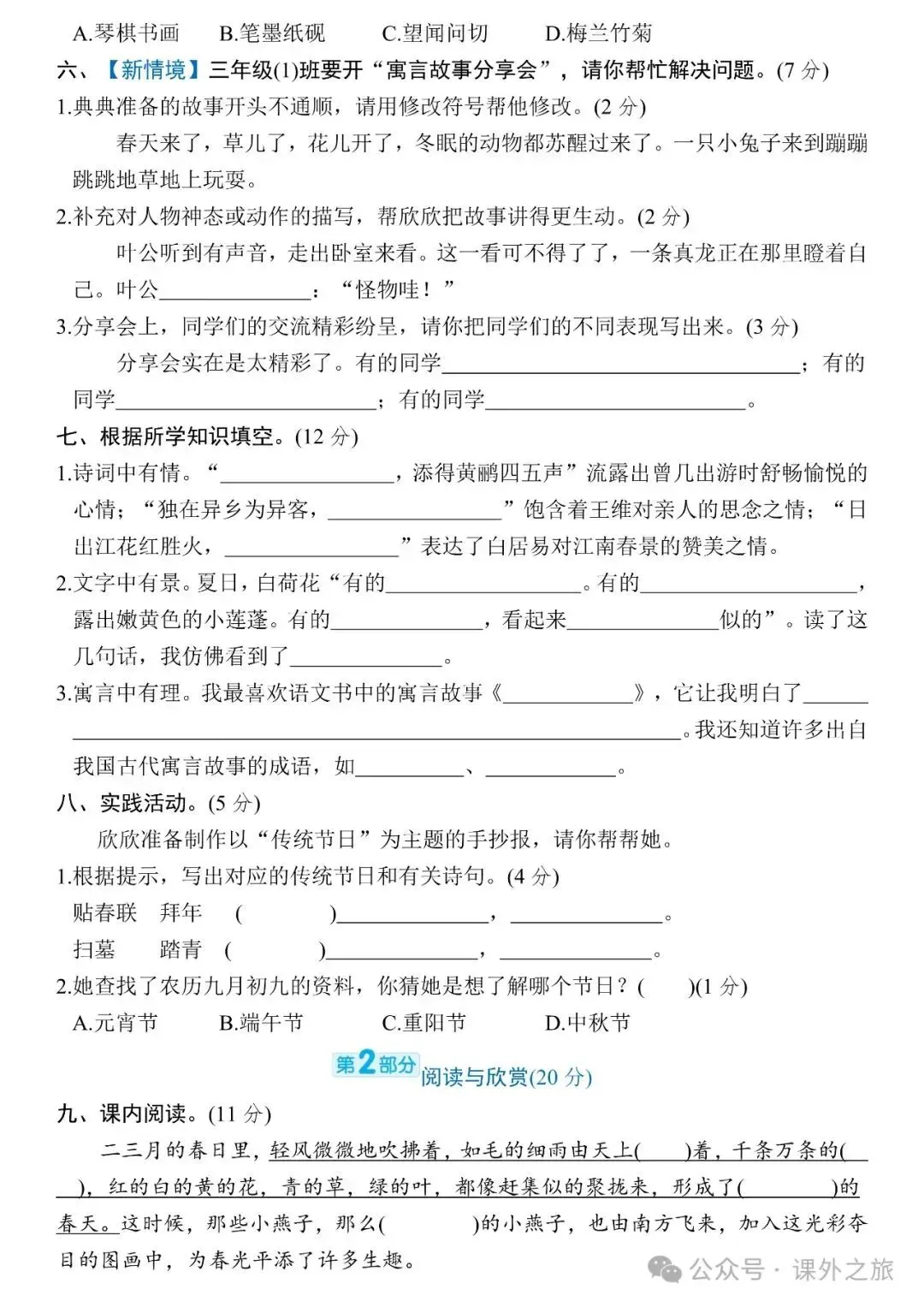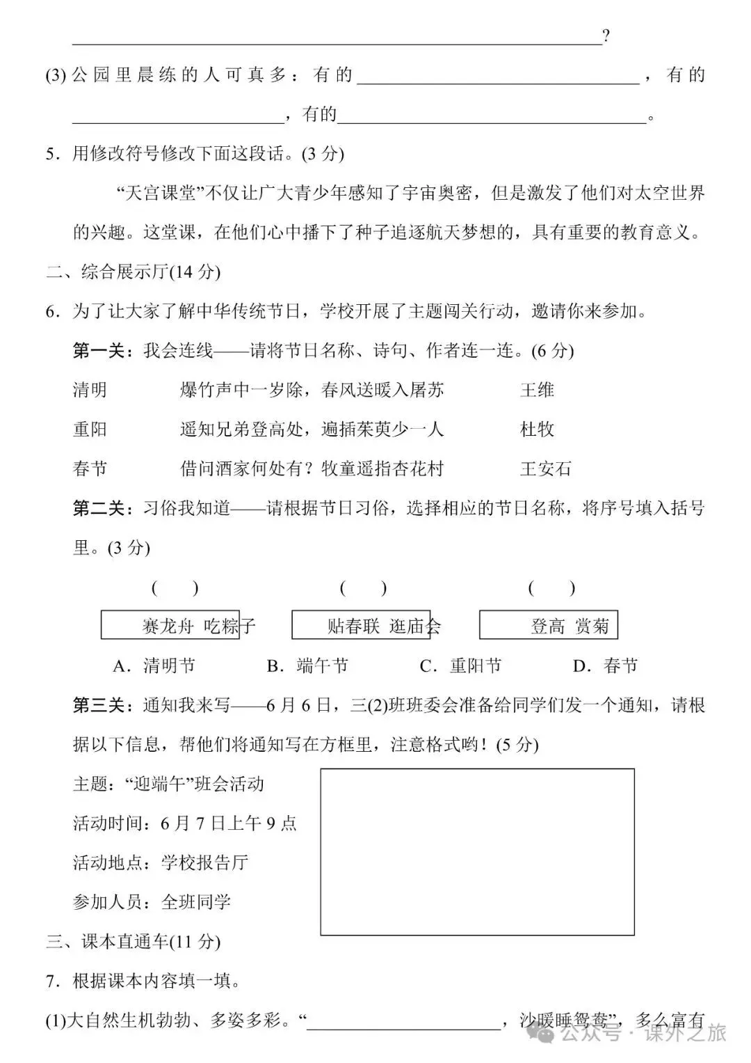 附:统编版语文三(下)期末专项训练