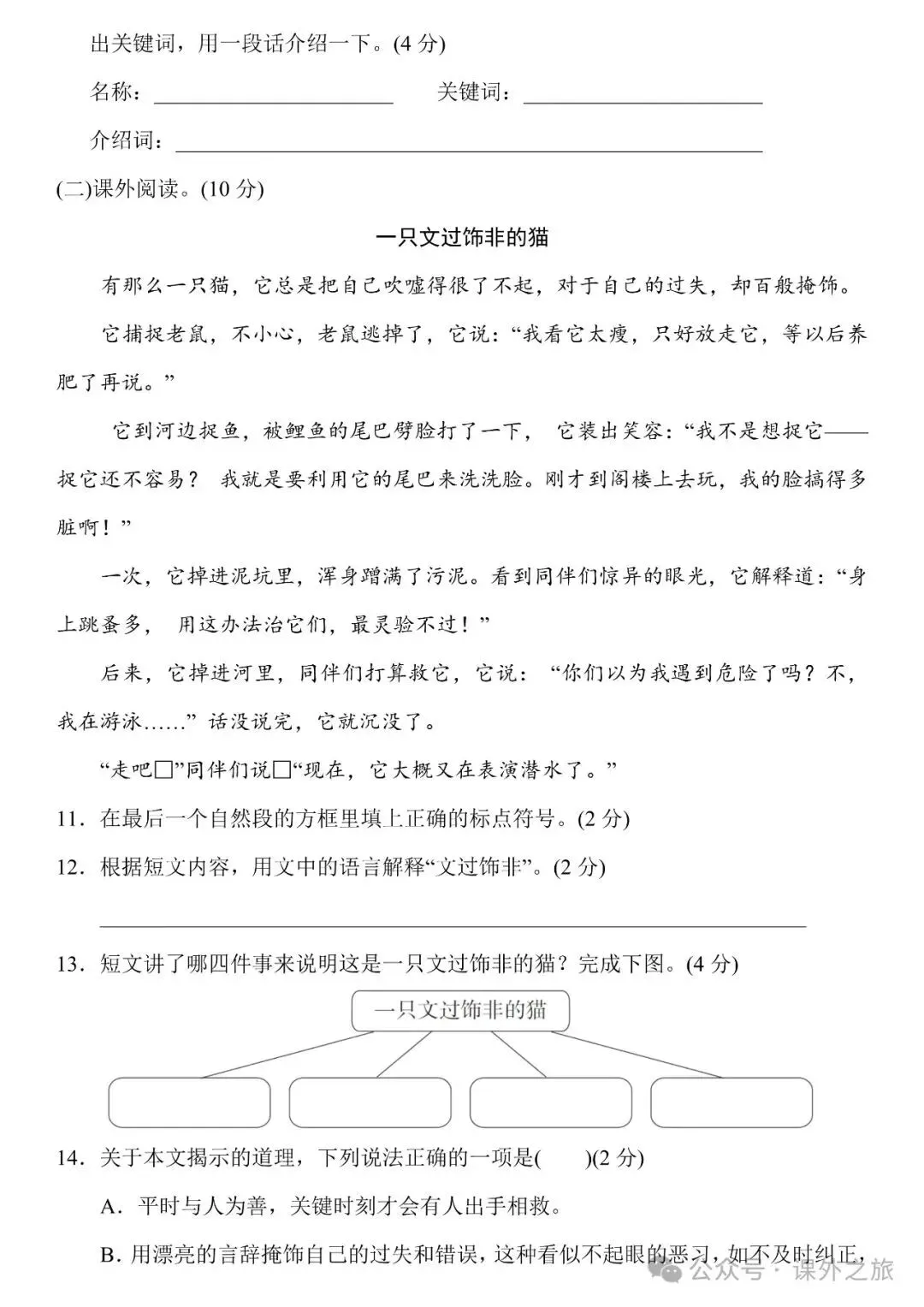 一只铅笔的梦想 尾巴它有一只猫 奇妙的想象 第五单元测试卷