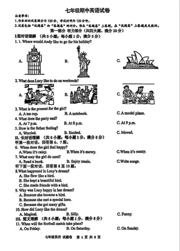 合肥市45中七年级期中试卷
