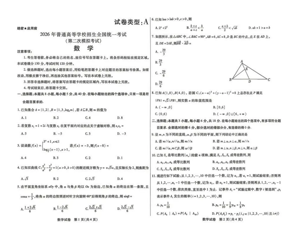 【最新试卷】辽宁省名校联盟2026届高考数学信息卷(二)+答案