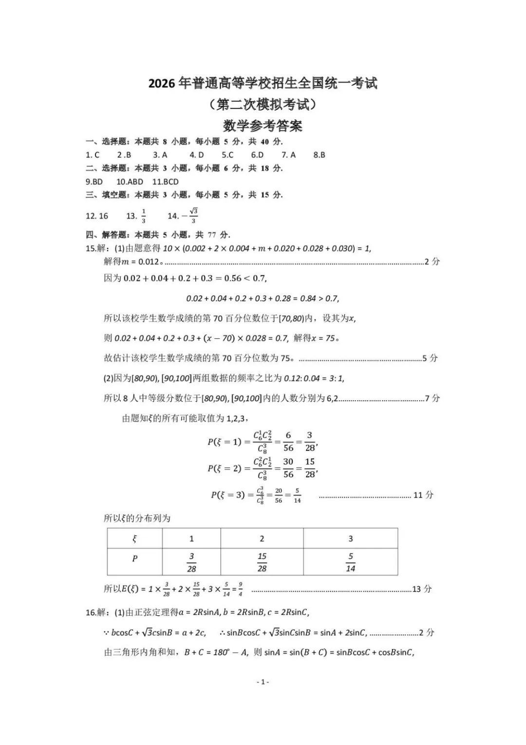>【试卷分享】2026届内蒙古包头二模数学试卷+答案