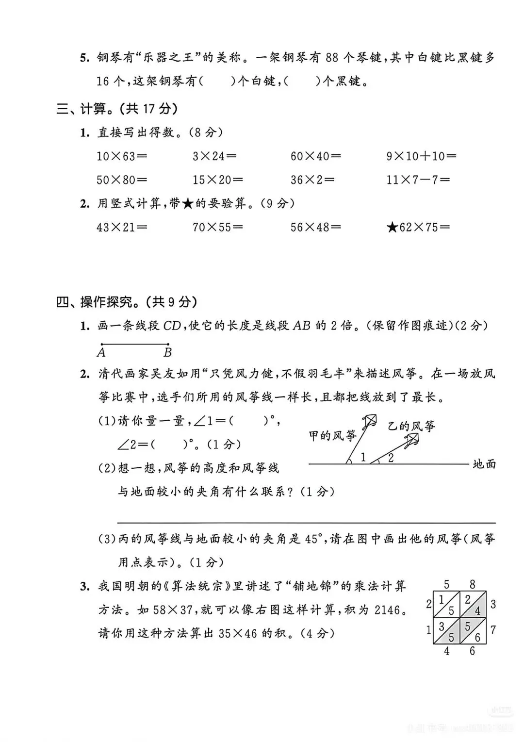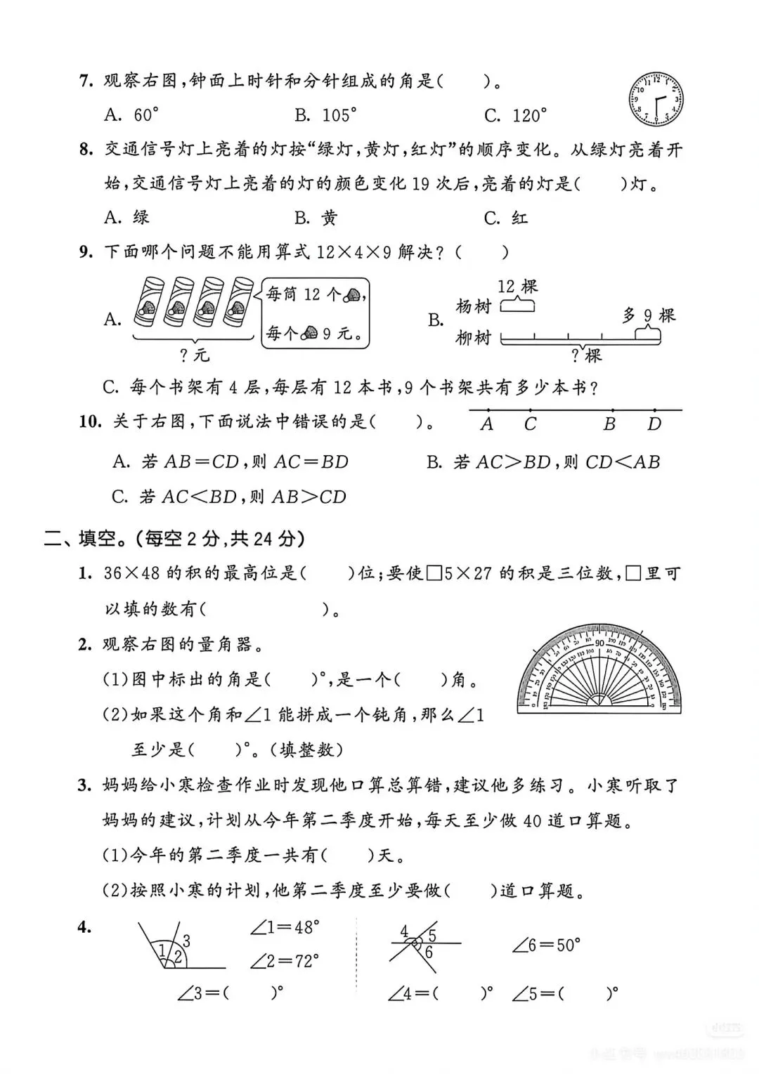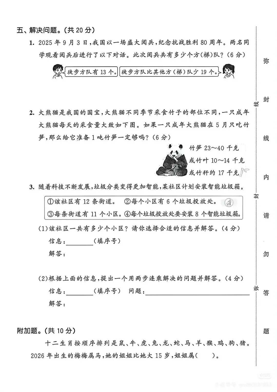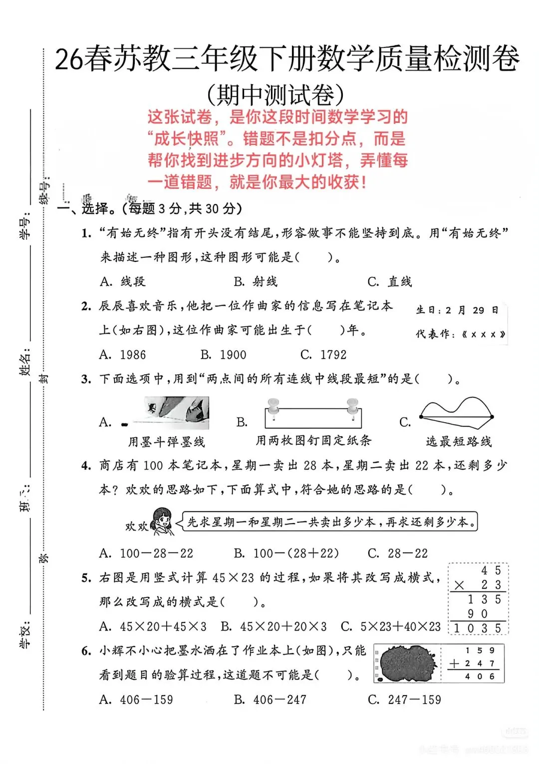2026春苏教版三年级数学下册期中试卷(江苏学生专用)