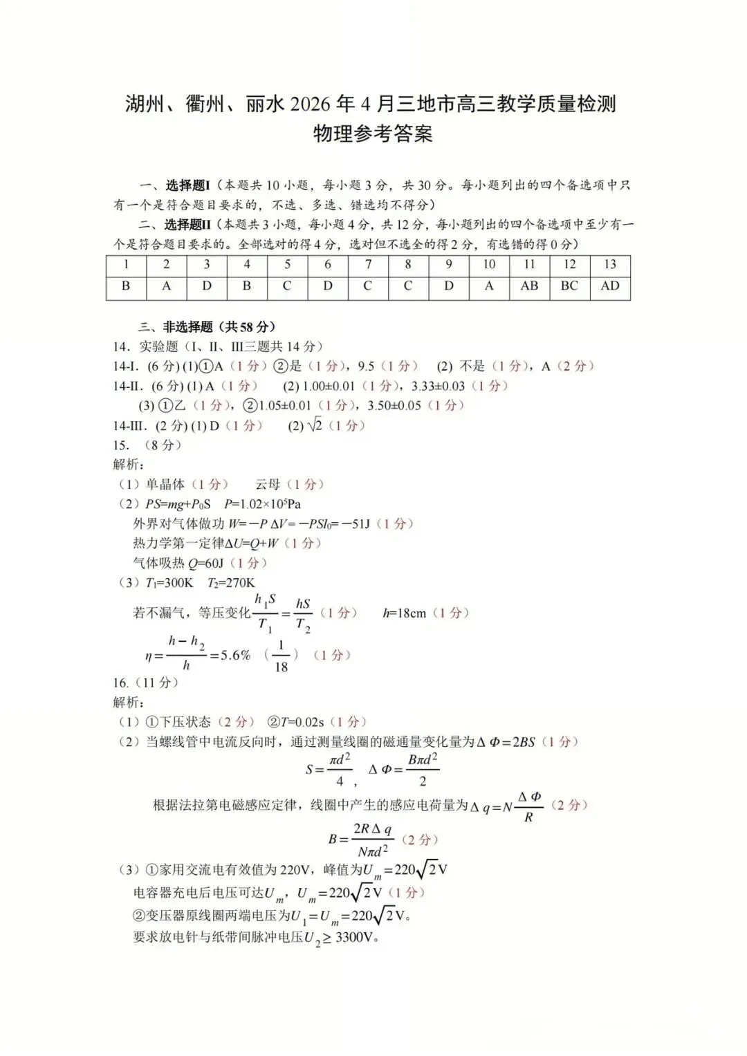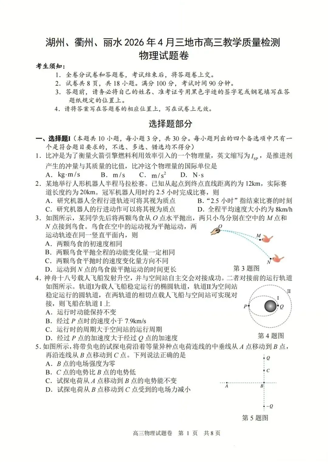 试卷收集| 2025-2026学年4月嘉兴市中考一模