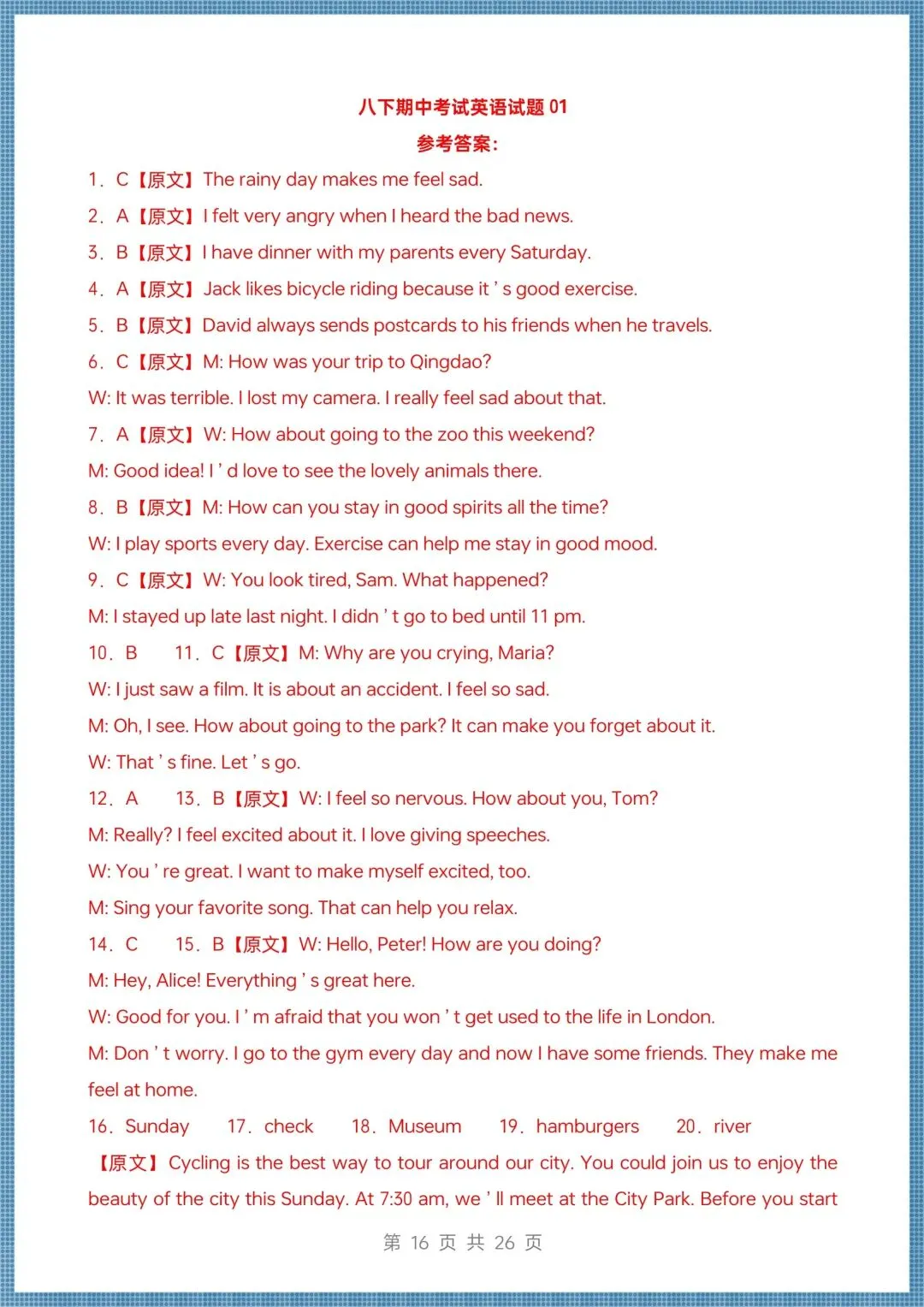 2026新(仁爱版)八年级下册英语期中试卷(多套含答案听力),电子版可打印!