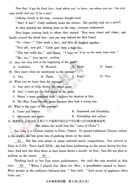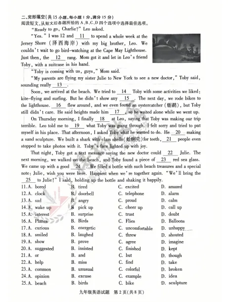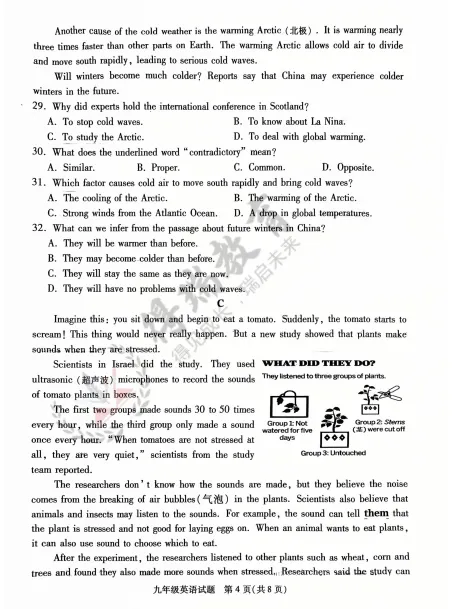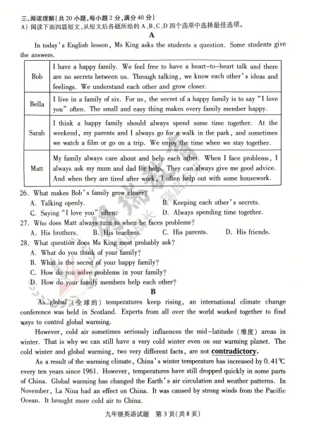 铜山区2026九年级第一次质量检测英语试卷来了!!!