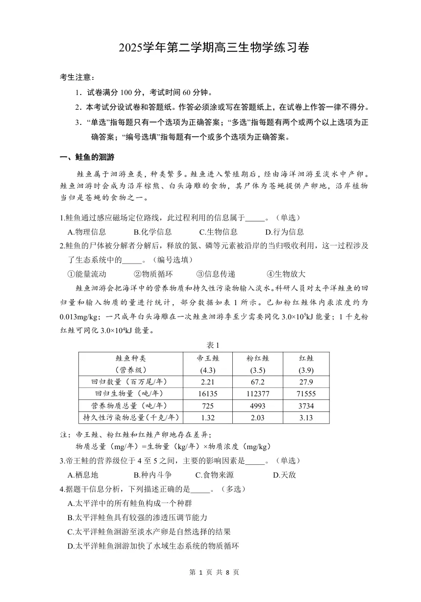 上海市松江区八年级第二学期英语期中监测试卷及答案(2026.4)