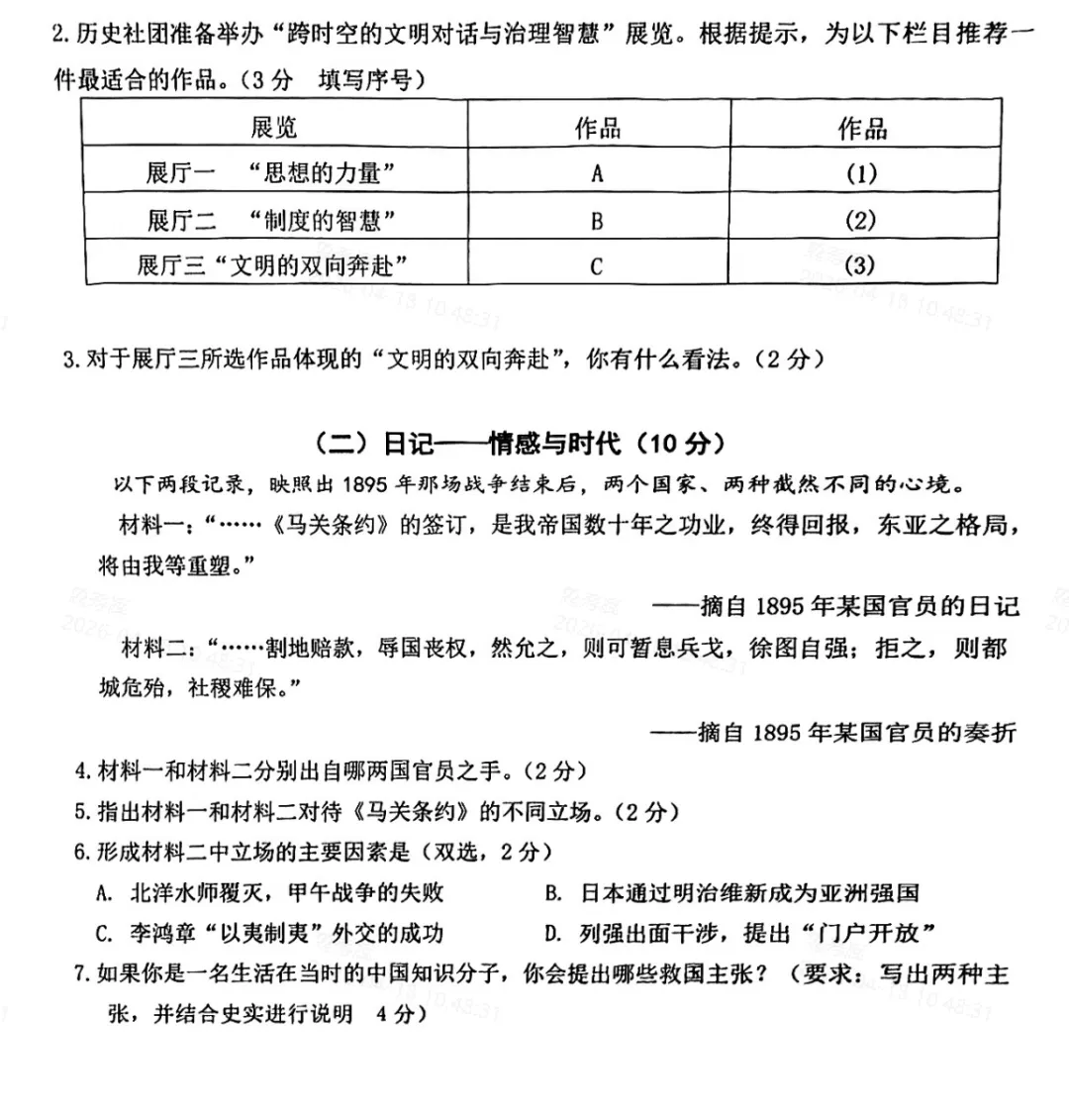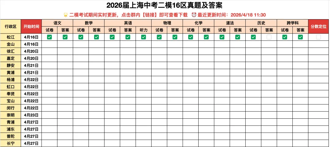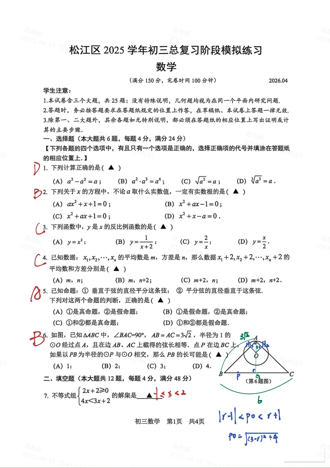 4.20初三二模最后准备!松江二模试卷及答案备考