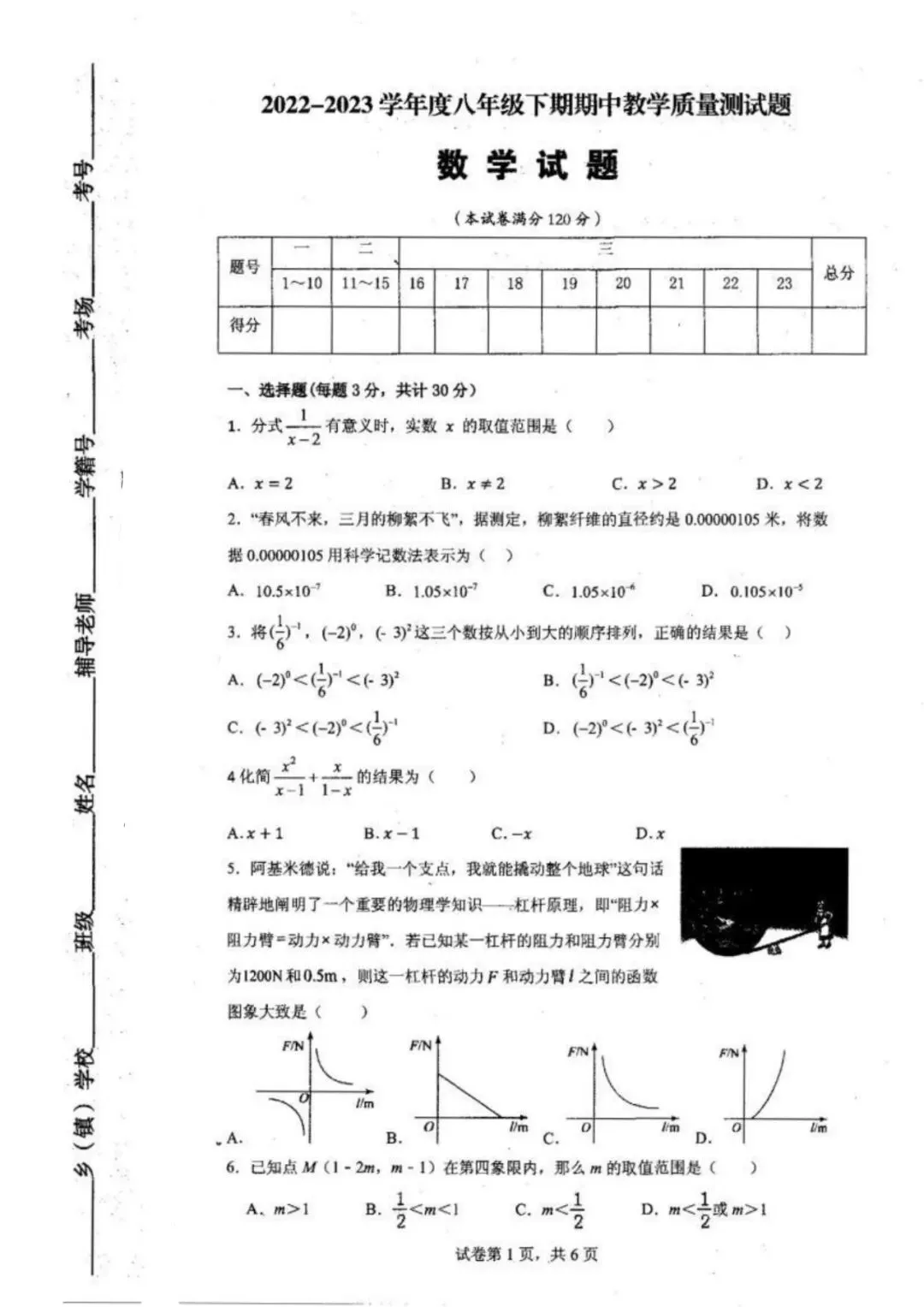>八年级数学下学期期中试卷