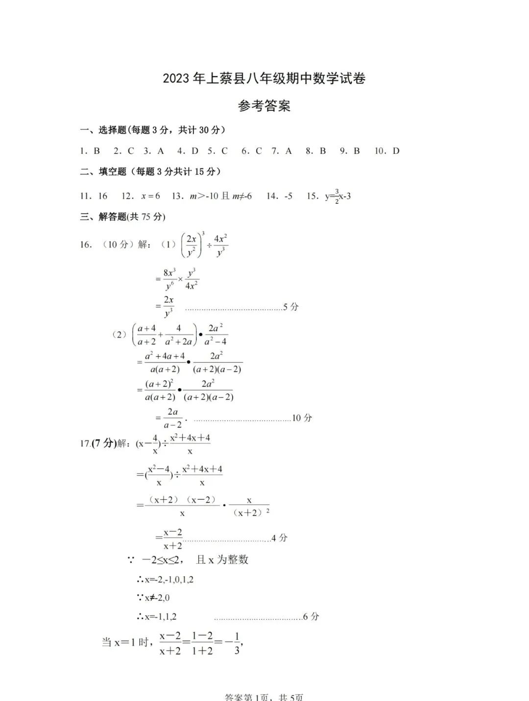 八年级数学下学期期中试卷