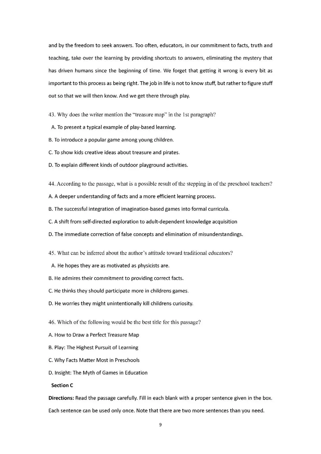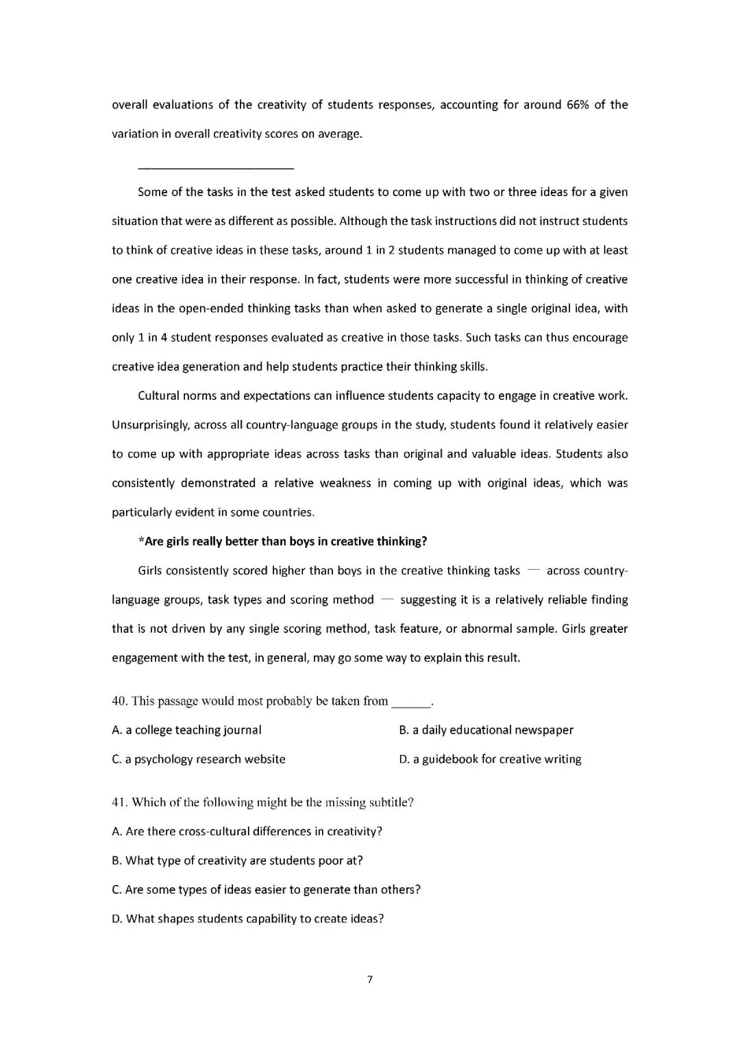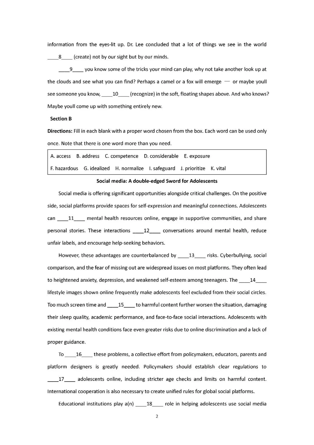 2026届上海市普陀区高三二模英语试卷(含答案)