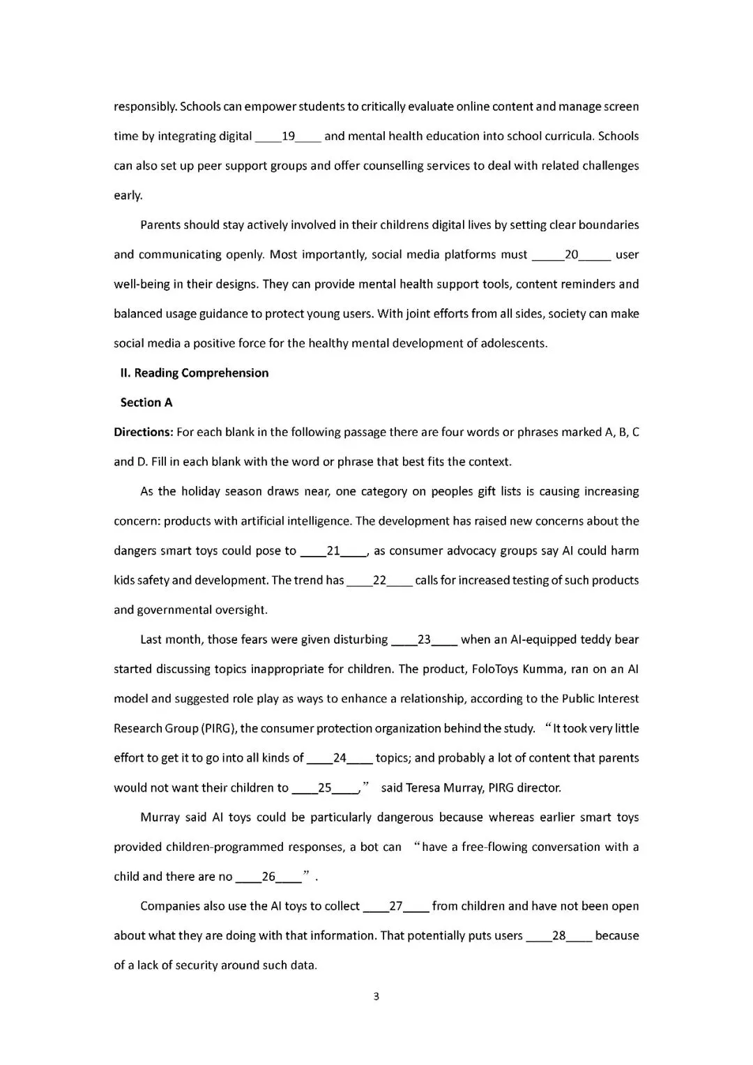 2026年安徽普通高等学校专升本考试公共课《英语》真题及参考答案