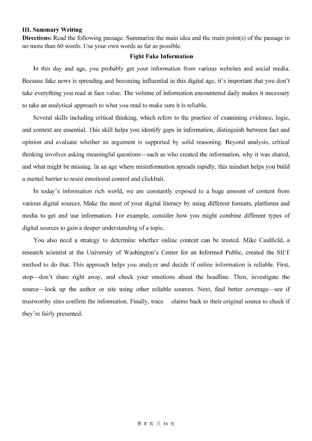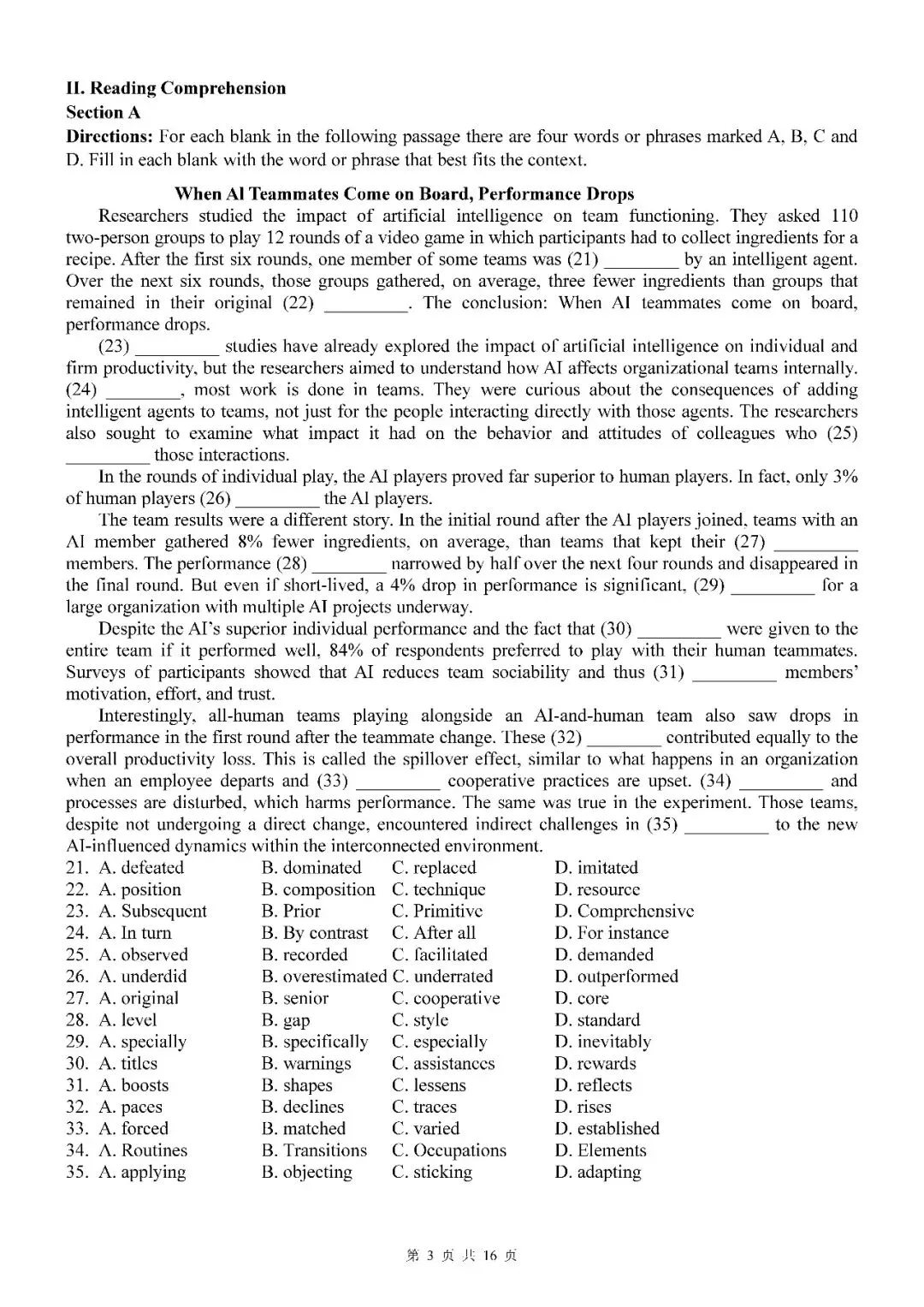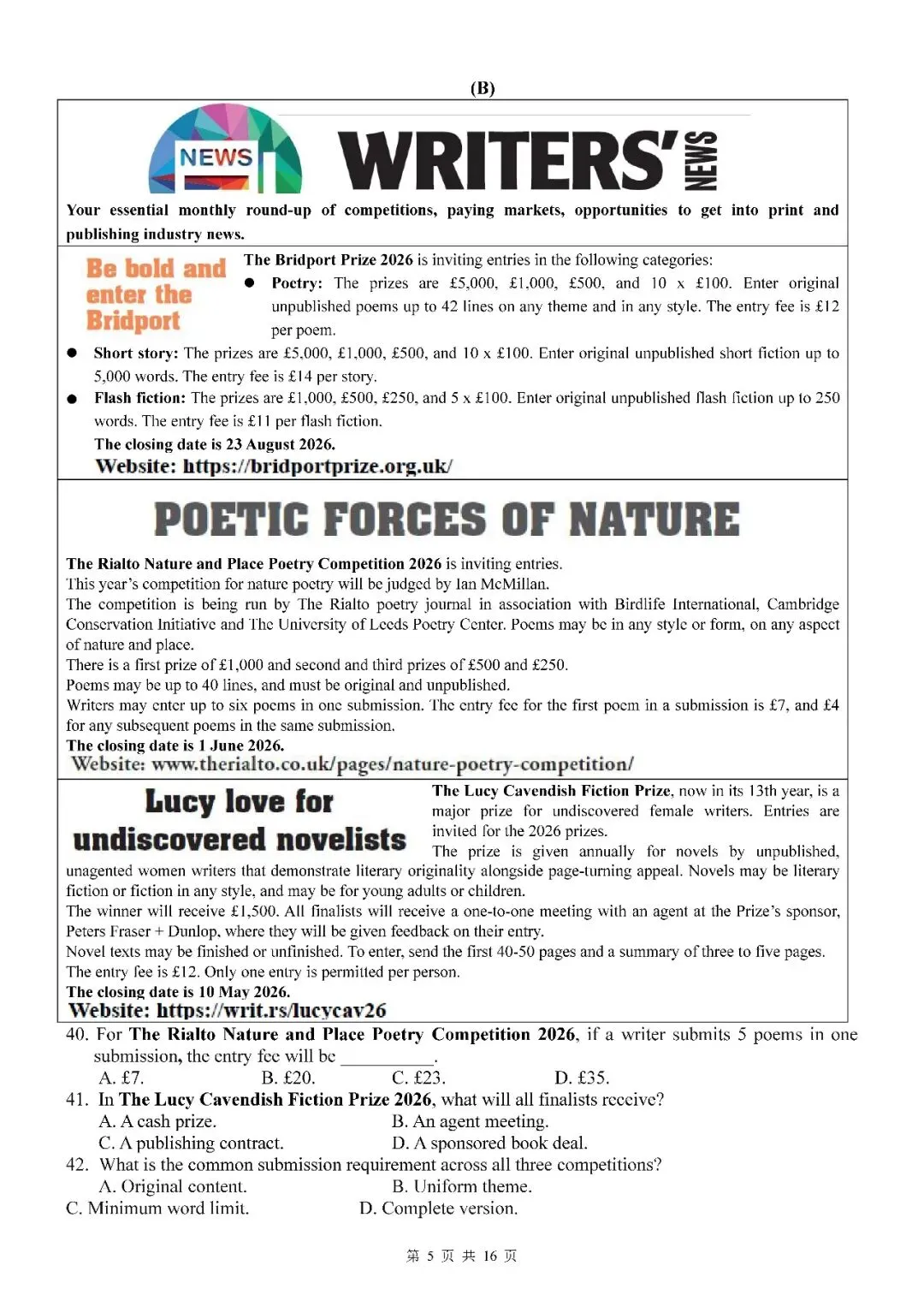 2026年安徽普通高等学校专升本考试公共课《英语》真题及参考答案