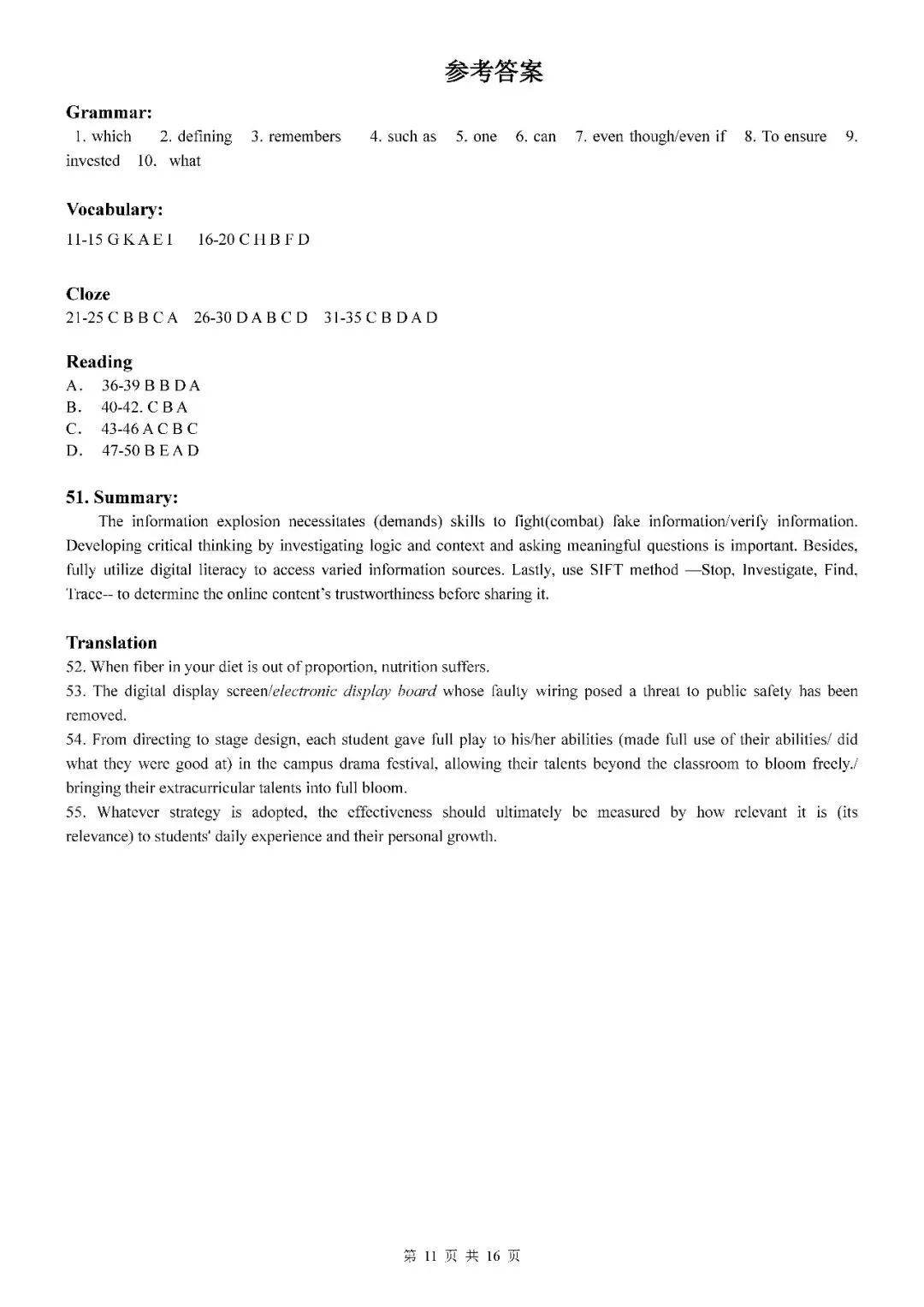 2026届上海市杨浦区高三二模英语试卷(含答案)