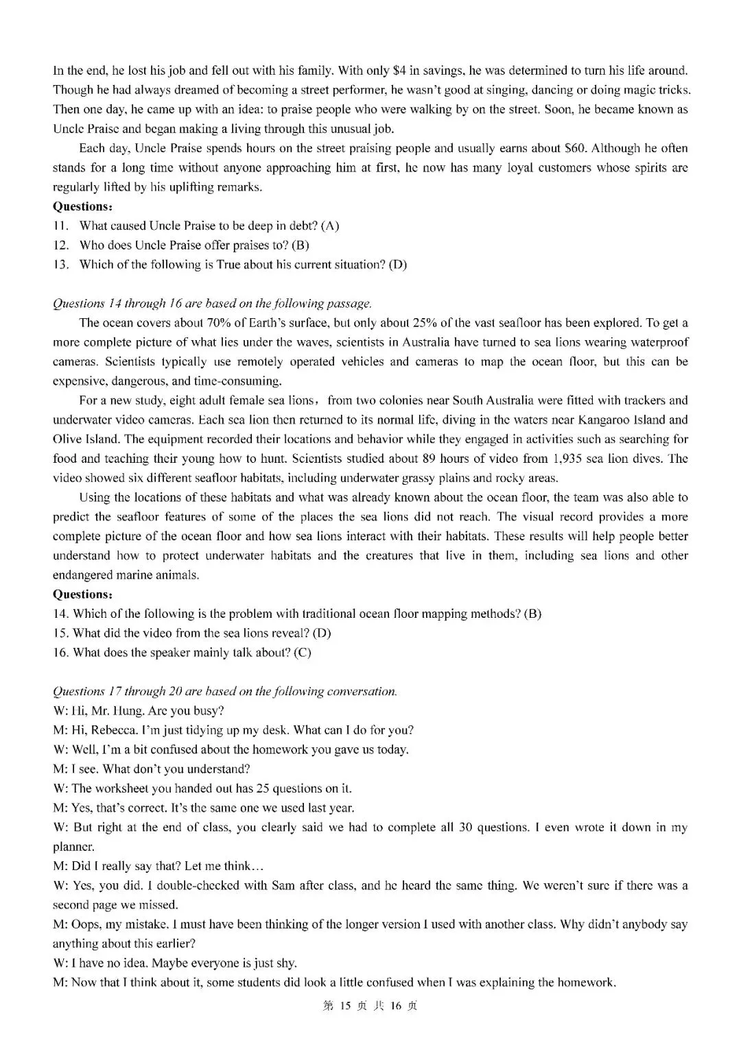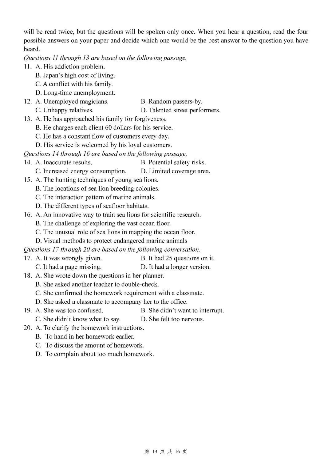 2026届上海市普陀区高三二模英语试卷(含答案)