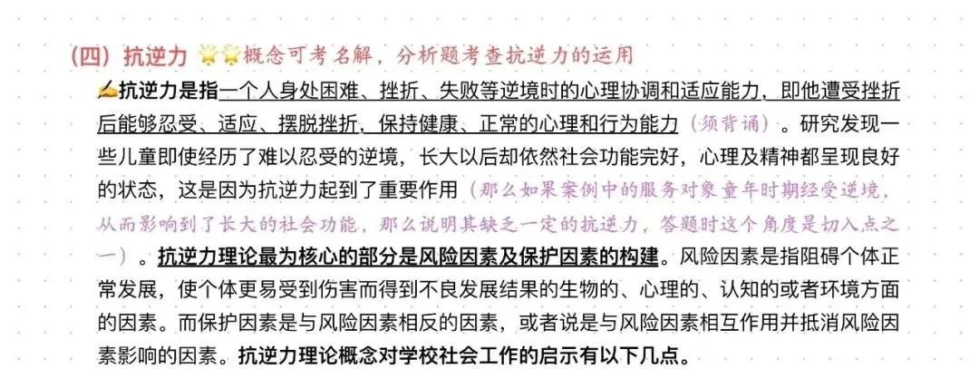 大家通过上述视频可以看出笔记里有非常多的标注,用彩色字体重难点区分度明显,一目了然!很多同学直接背书太枯燥没有背下去的欲望,这份笔记可以完美解决你的这个苦恼,拿到手不存在不愿意背的情况(除非你压根一点都不想背哈哈哈🤷♀️🤷♀️),这些彩色字体作用包括:口诀背诵、重难点标注、考点明晰、答题思路引导、区分醒目等,另外笔记里穿插的不少表格用来帮助大家更来系统地记忆知识点。通过上述的展示图大家能看出来,这份笔记是客栈团队非常用心去完成的,真的耗费了很多的心血!自己做过笔记的同学应该有感触,制作笔记是一项非常精细的工作,而恰恰我们非常擅长做这些精细的工作!!绝对不是敷衍了事,这份资料一定物超所值,好好利用这份笔记,你的答题视野将进入一个新的境界!如果你的学校每年中级实务这本书出题占比高达85%以上,那么在你榨干学透这本笔记后实务分拿到120分以上是比较轻松的!我们在制作过程中可以说是掰开揉碎了贯通考点,实务分析题不会答、措施类介入方法类无从下笔,作答分析题时不知道什么时候该用什么理论是很多同学的通病,那么这份笔记可以引导大家如何去答题!称得上是一本应试宝典,可以引导你答题,在背诵过程中自然而然形成自己的答题思路,很多同学害怕实务主要就是实务太细碎,没有形成自己的理解和答题方法所以才会觉得头疼,当你有了思路后,背诵就变得轻松了!购买笔记,我们赠送答疑服务哦!笔记仍然只发纸质版(一经发货,不退不换),大家下单前一定要仔细阅读上述内容,确保自己需要这份资料再进行购买哦!需要下单的同学可联系我们的官方微信👇👇另外现阶段没有优惠,需要的同学可以参与真题兑换计划领取优惠券,最低可抵10元!提醒:另外本平台出品的社会工作导论第三版考研笔记(27最新版)已上新,两本一起下单可享受15元的优惠哦!