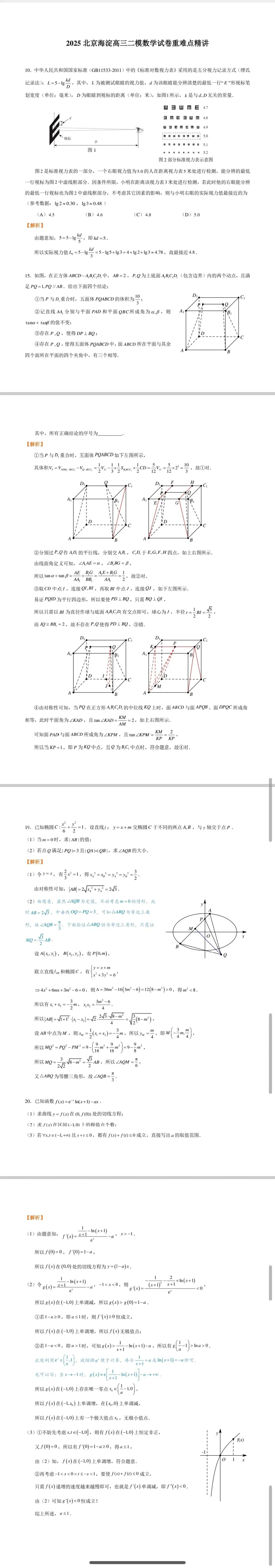 2025北京海淀高三二模数学试卷重难点精讲