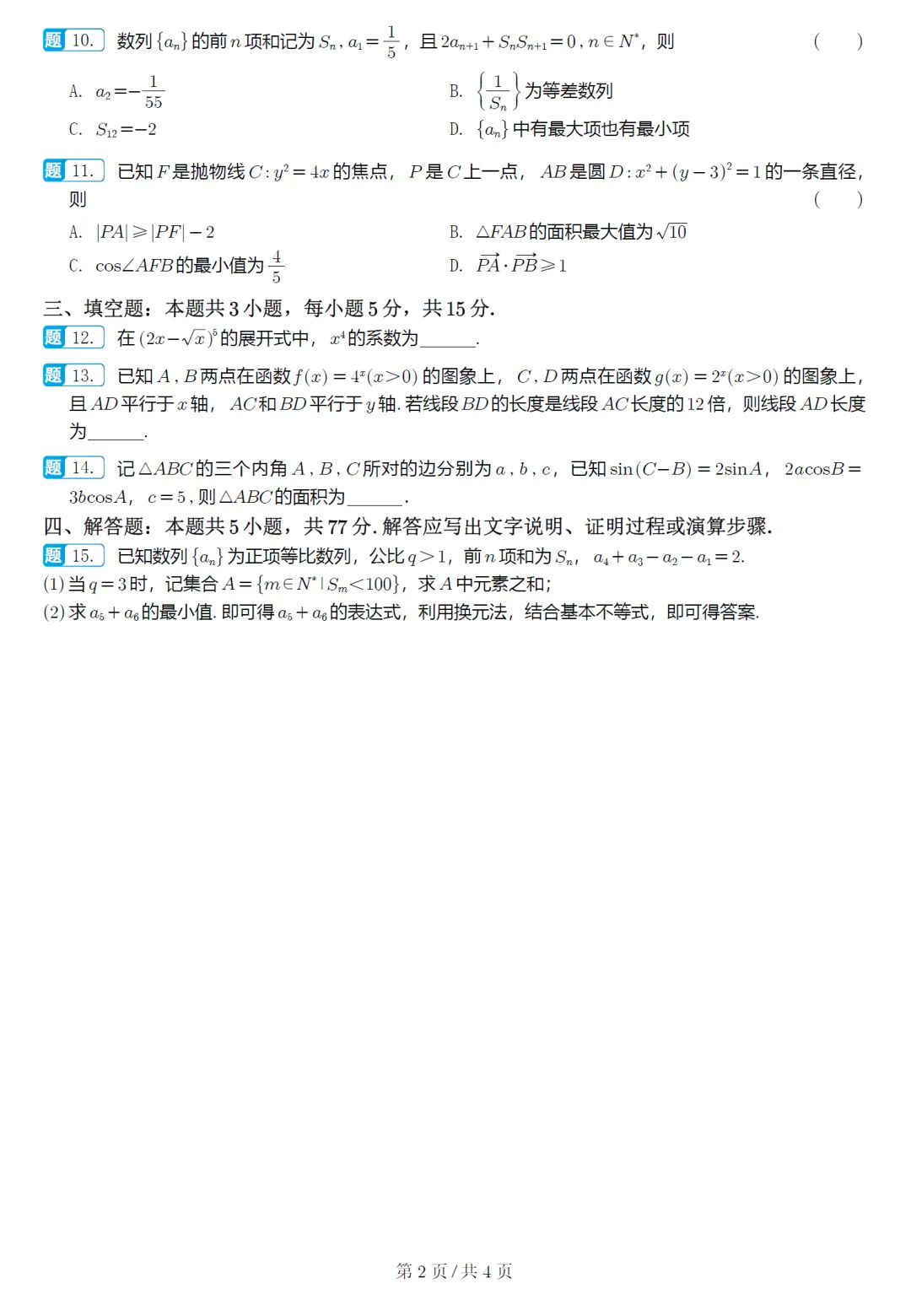 255.安徽省A10联盟高三联考数学试卷及逐题解析(2026.4)
