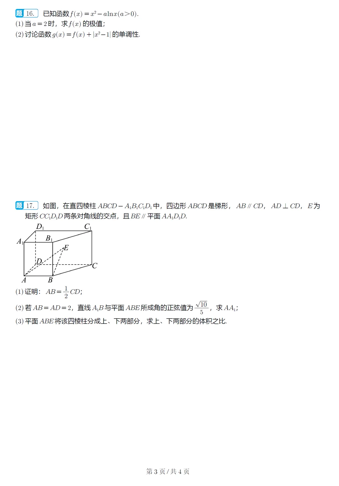 239.天一大联考高三联考数学试卷及逐题解析(2026.3)