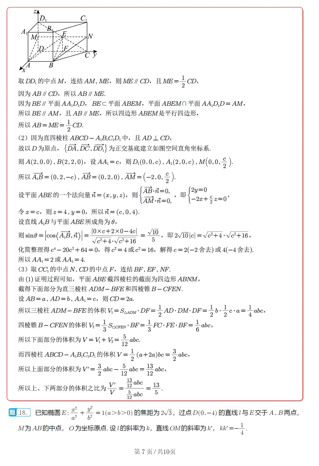 248.浙江台州市二模高三数学试卷及逐题解析(2026.4)