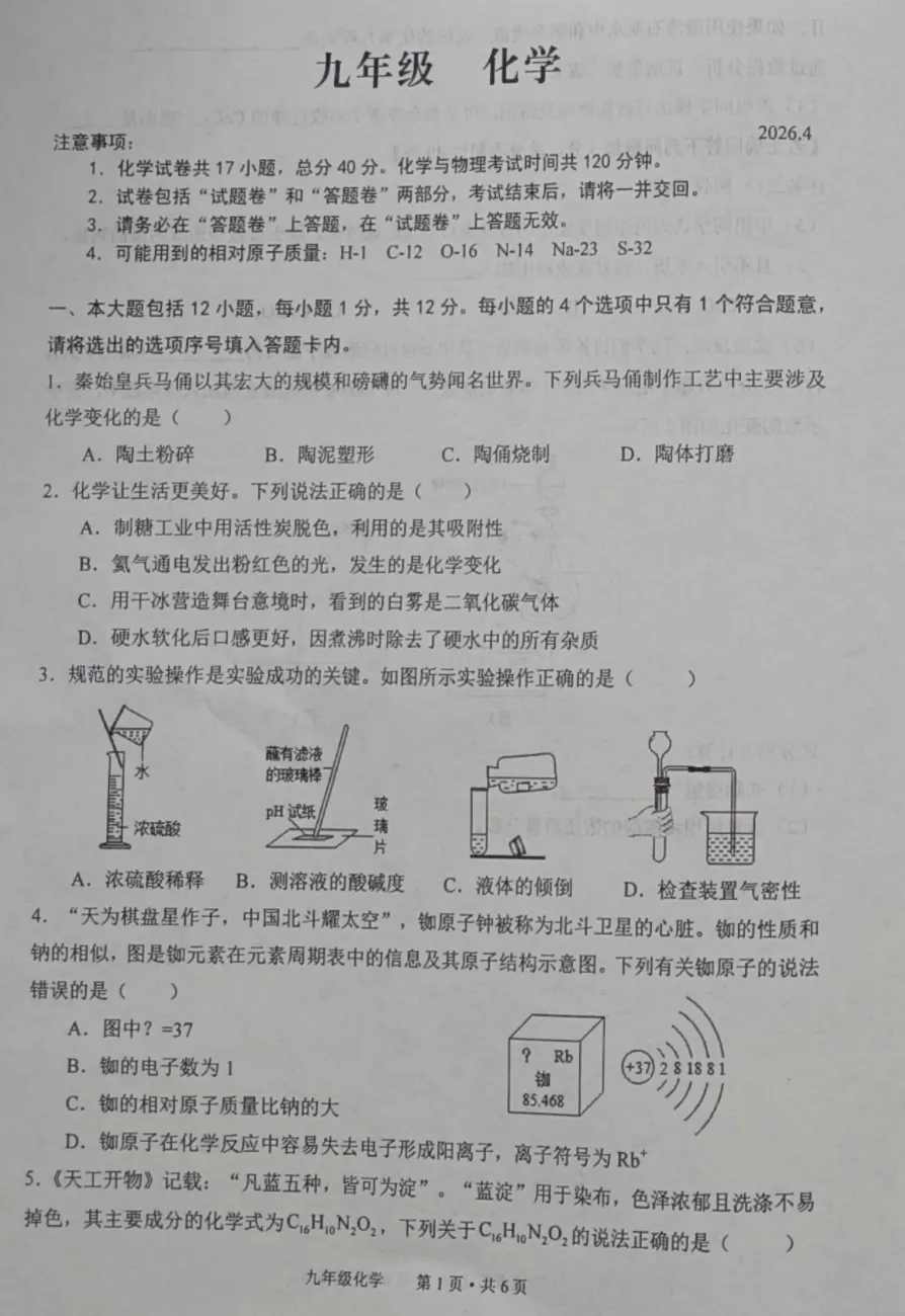 一、选择题(每小题1分,共12分)