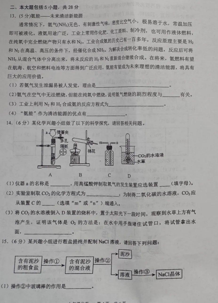 二、非选择题(共28分)