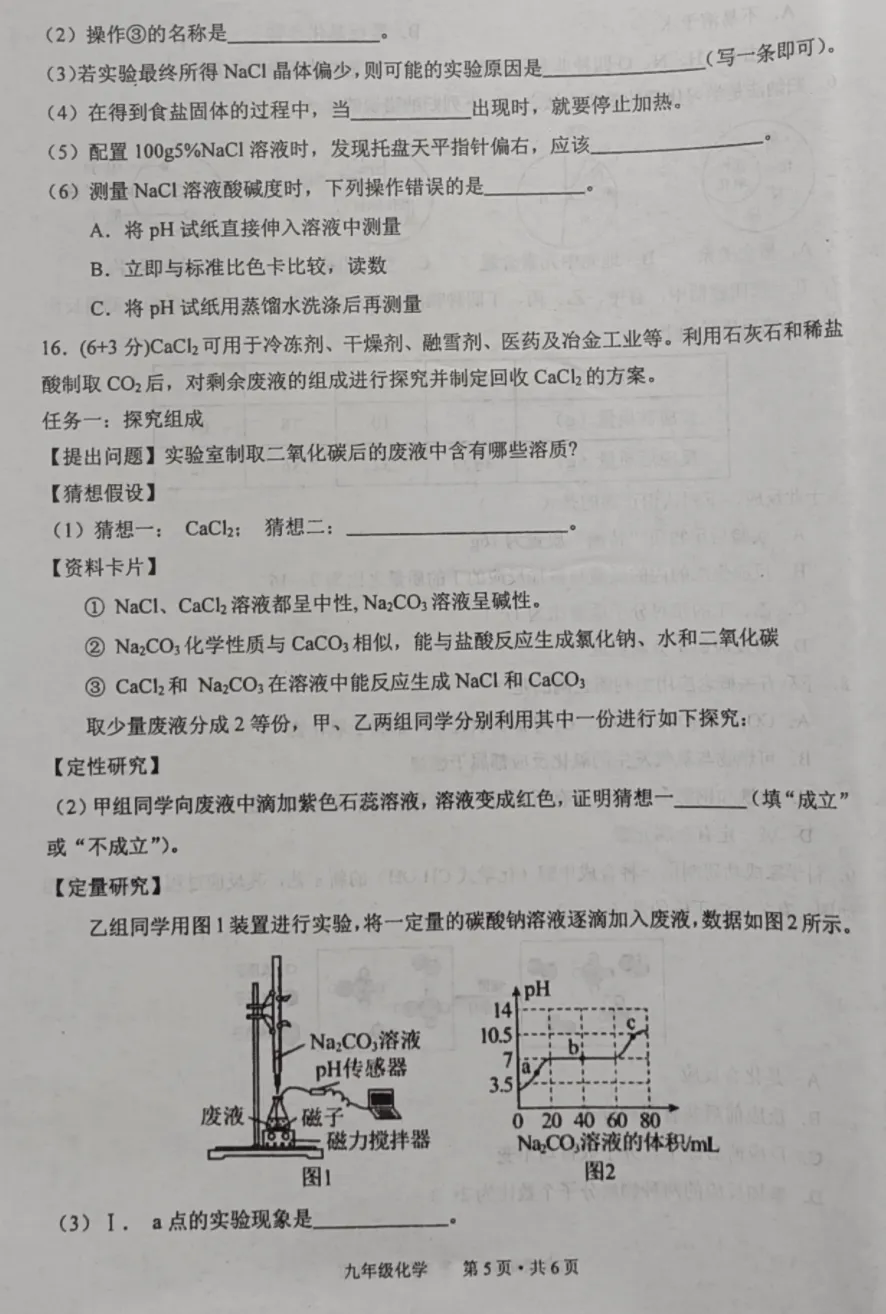 (6)NaCl、Na₂CO₃(2分,写对一个给一分)