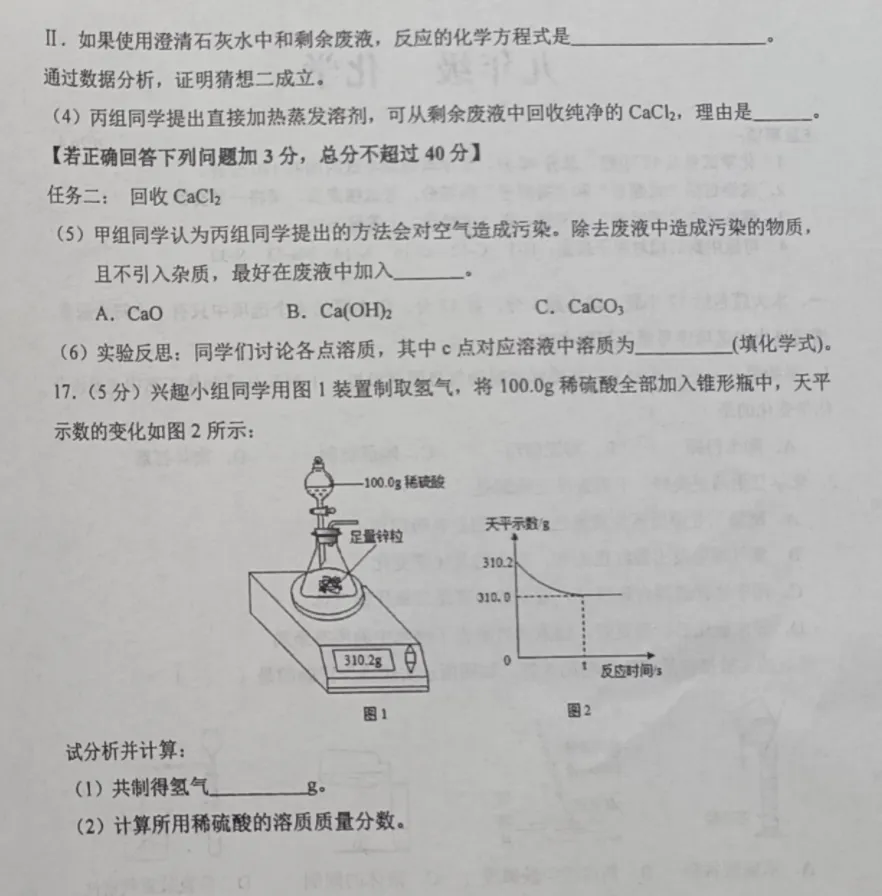 (1) 猜想二:CaCl₂和HCl