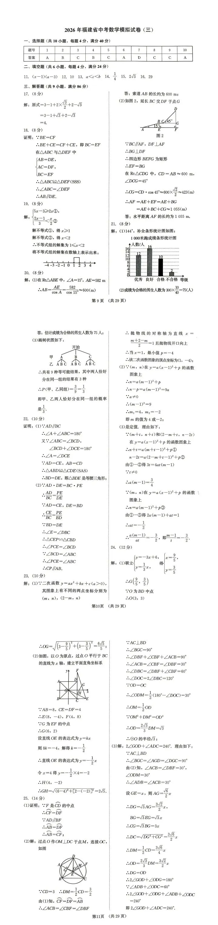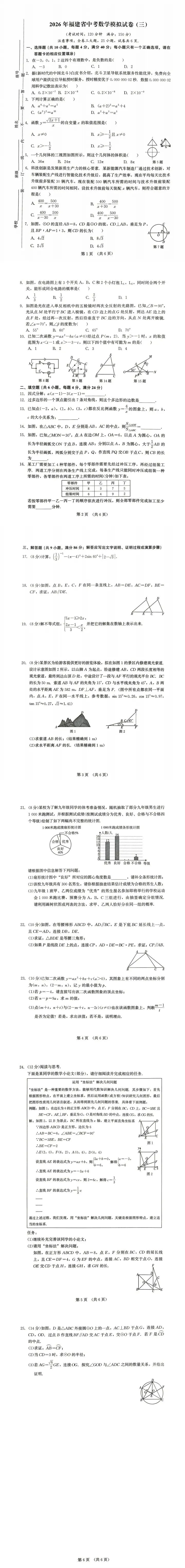 26一检真题!福州九年级数学一检含答案