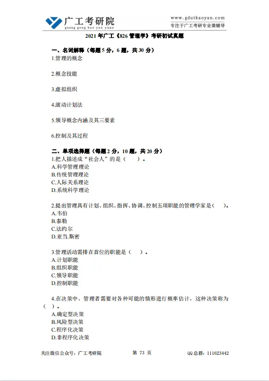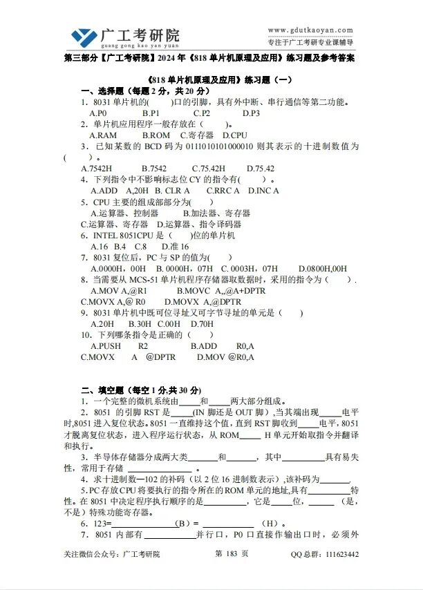 配备广工历年真题&答案解析