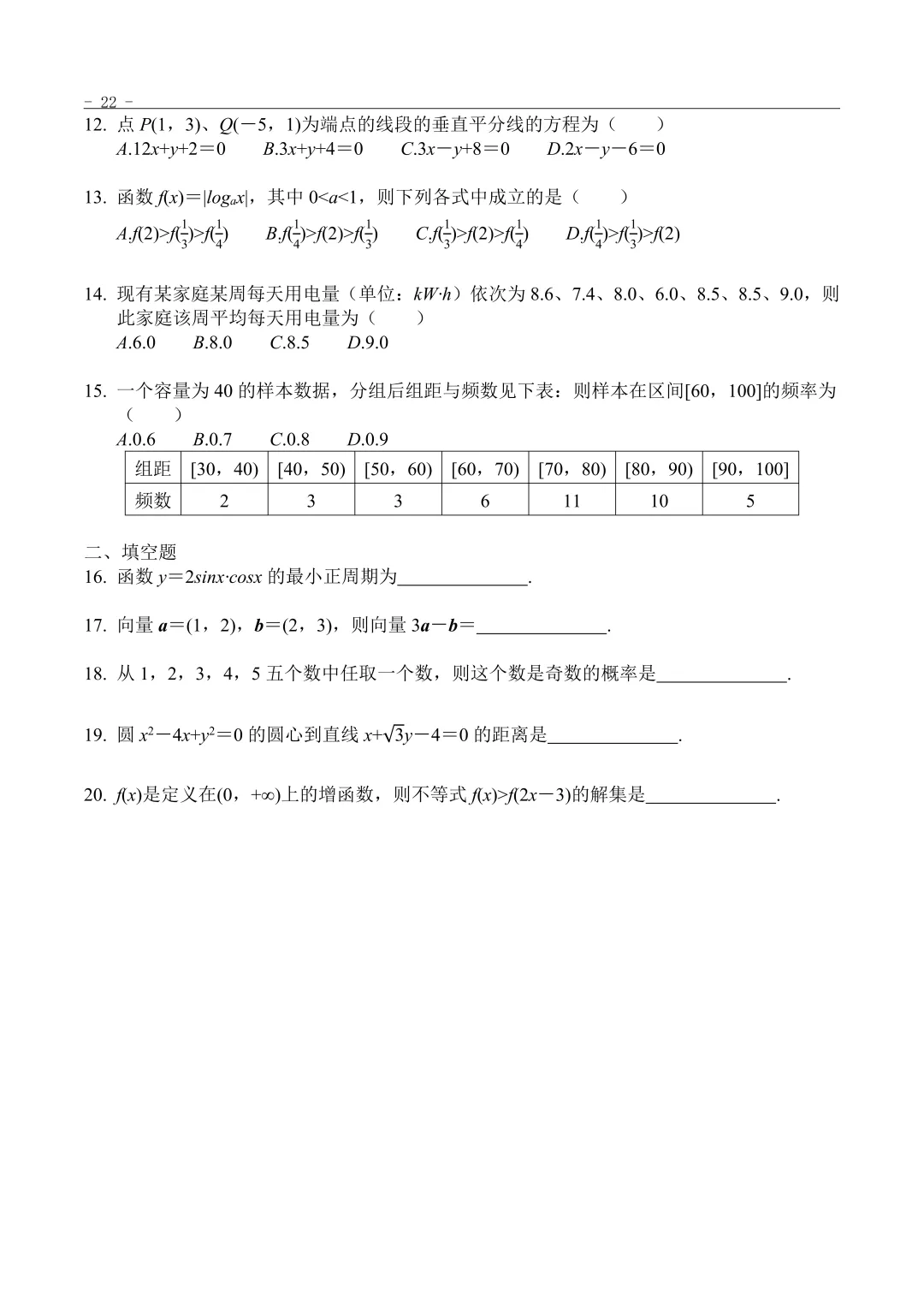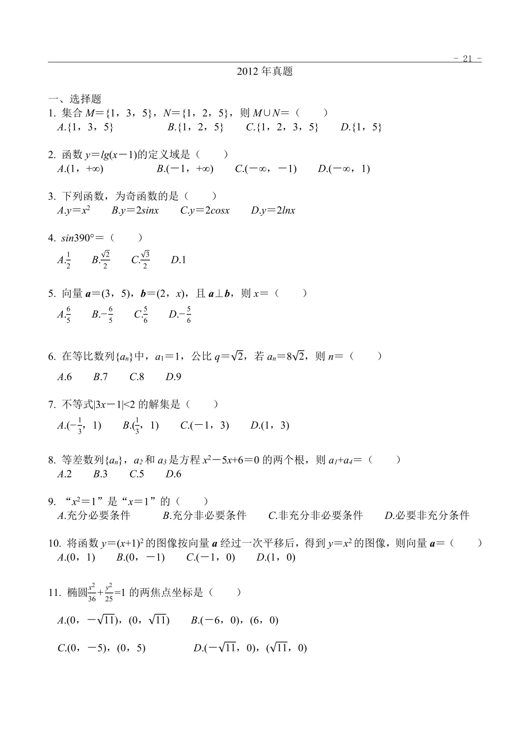 >2012年“3+证书”考试数学真题