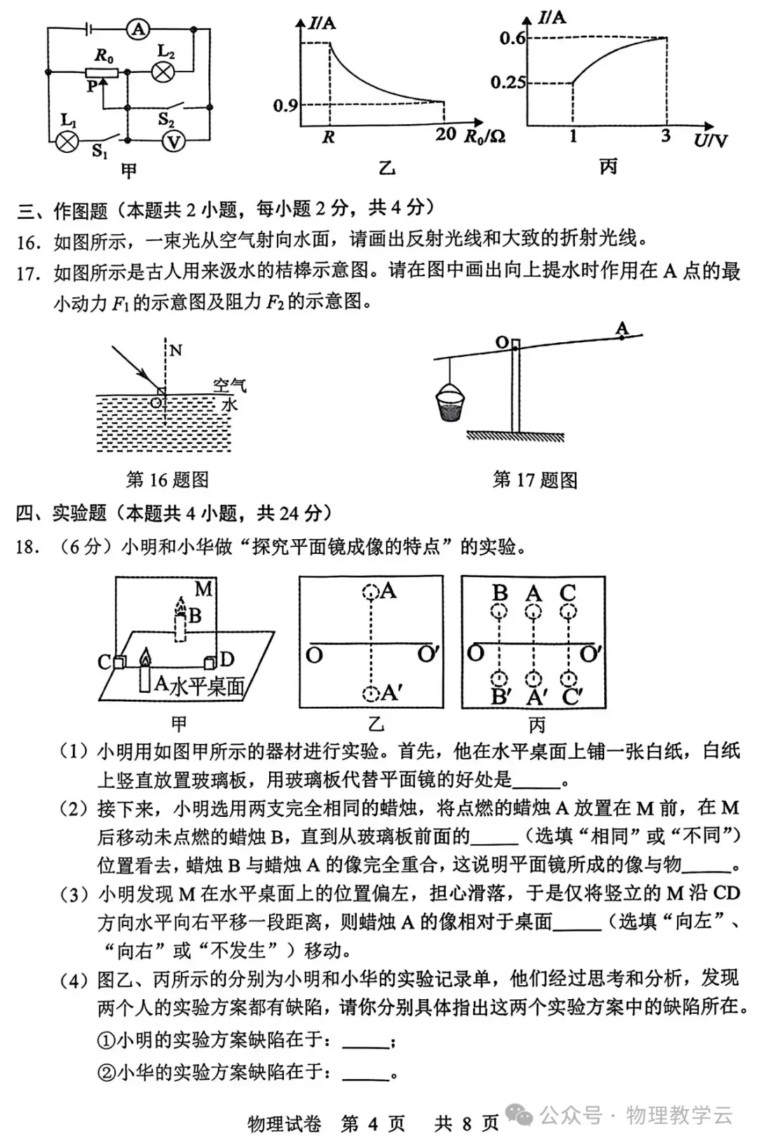 【物理试卷】2026中考物理一模卷(附参考答案)