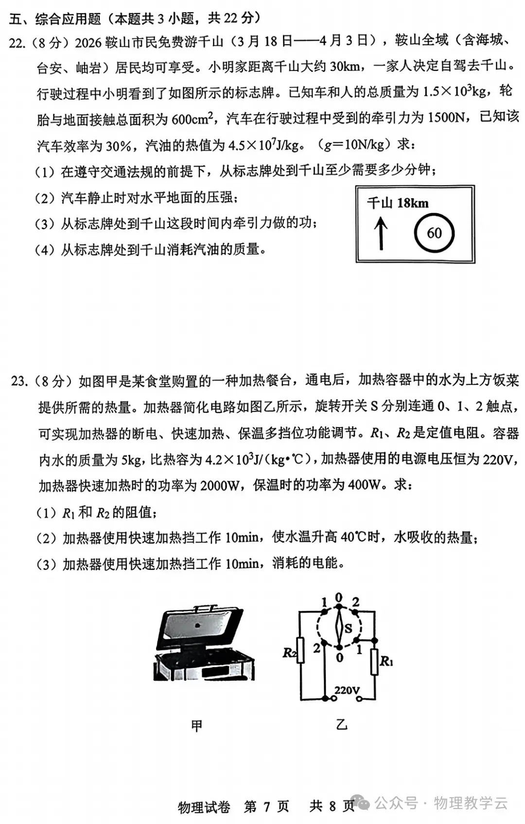 2026.04 鞍山九年级模拟数理化试卷和答案