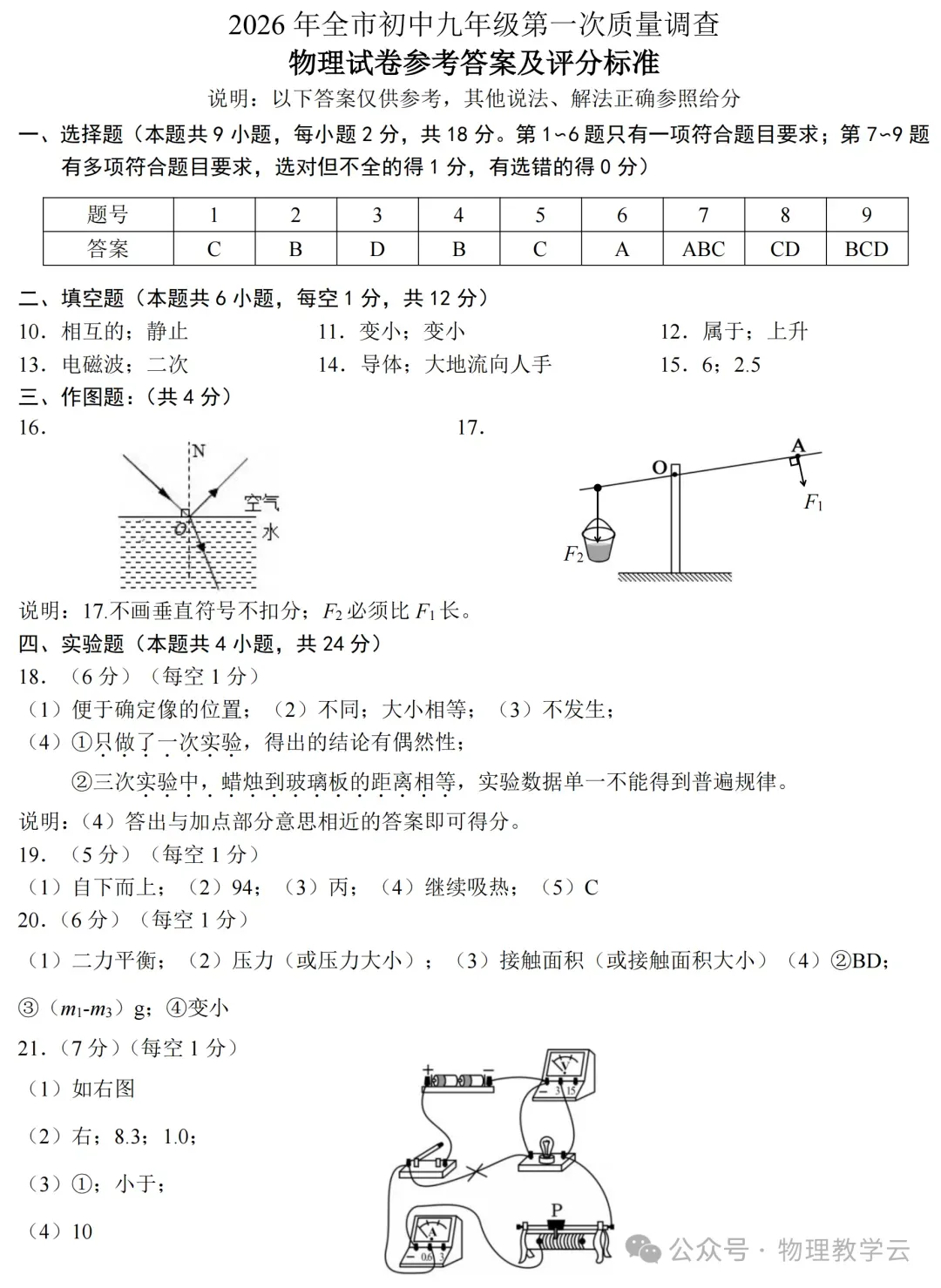 >【物理试卷】2026中考物理一模卷(附参考答案)