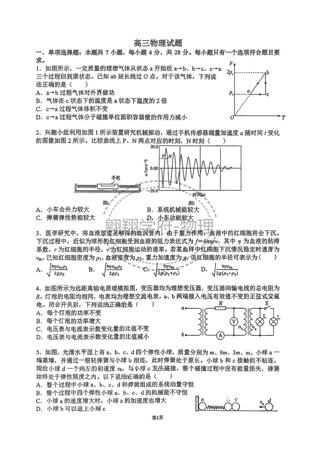 【物理试卷】2026中考物理一模卷(附参考答案)