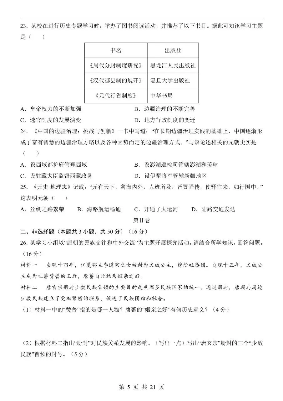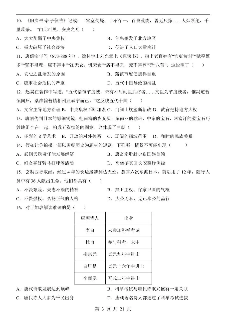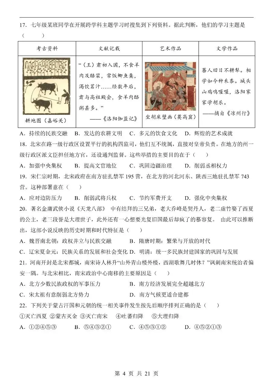 2026年春新版七年级下册历史期中考试卷共4套含答案可打印