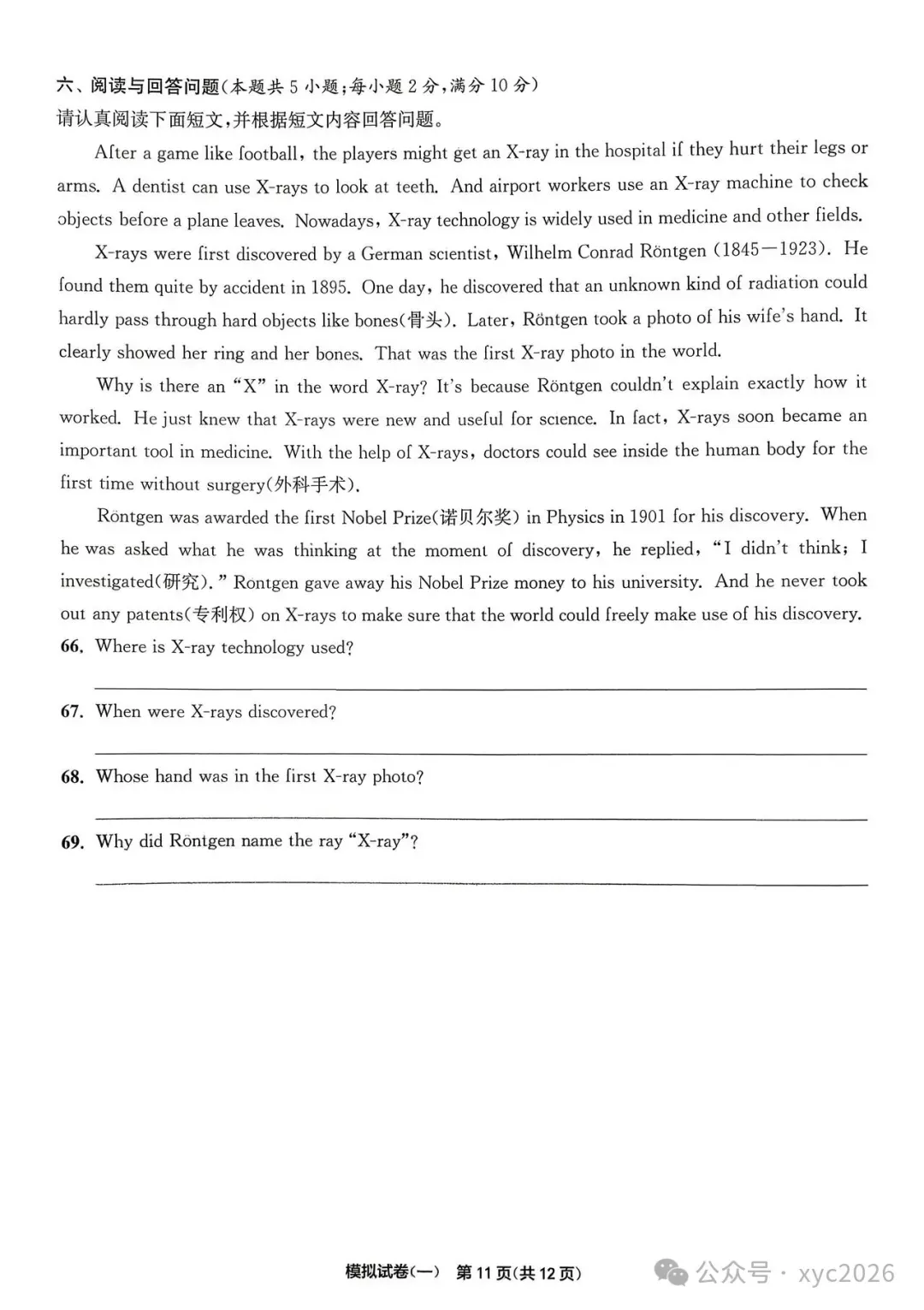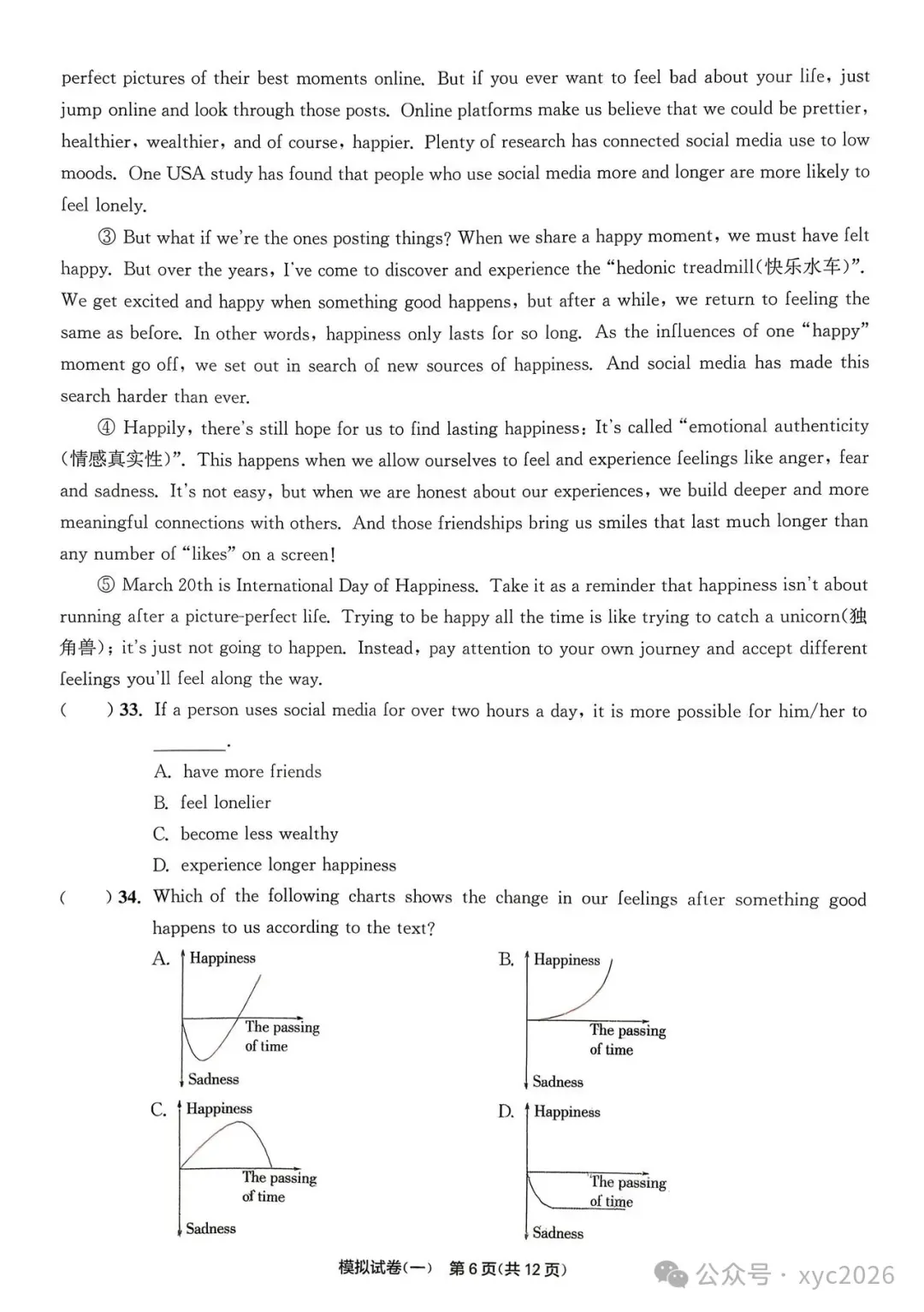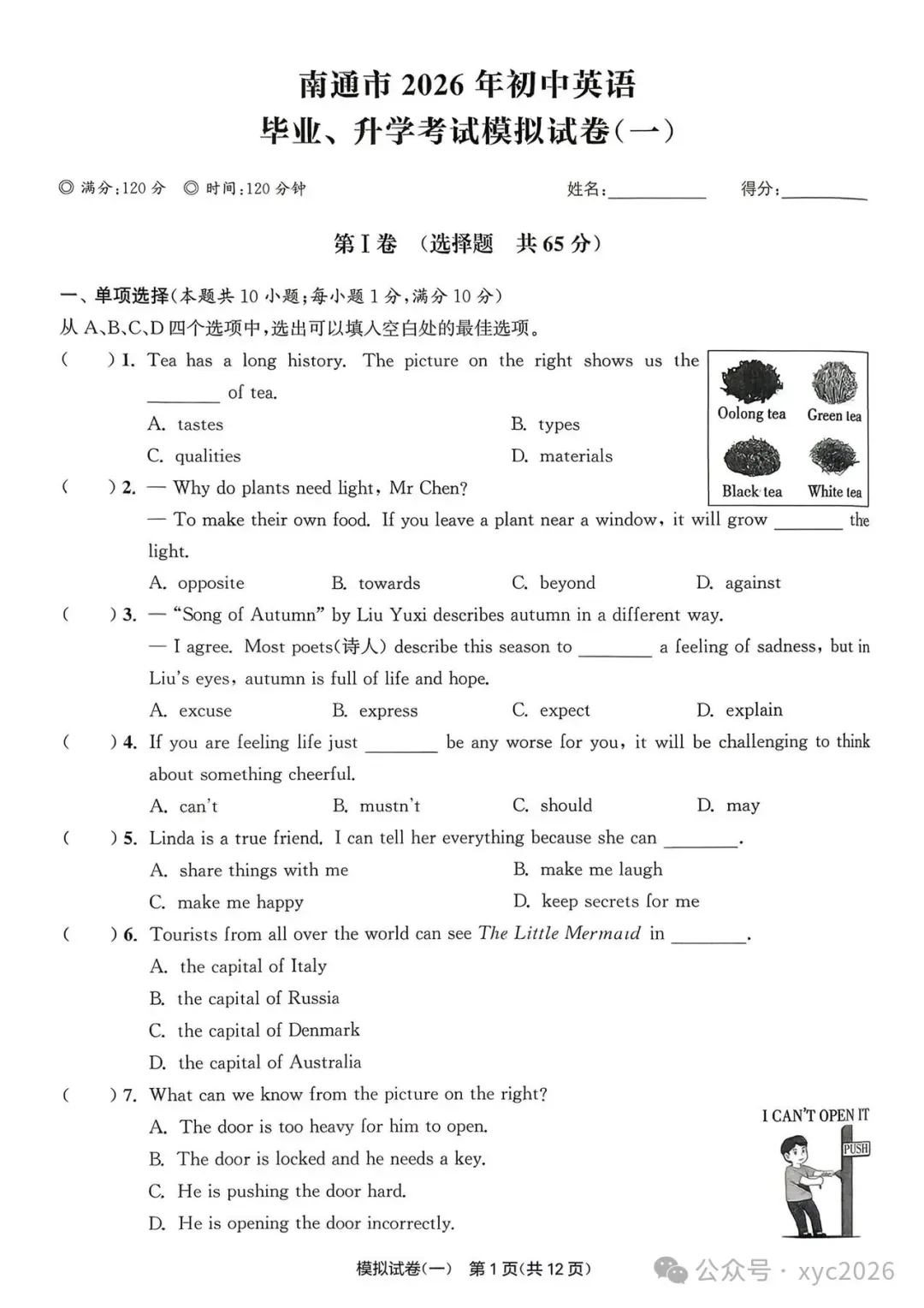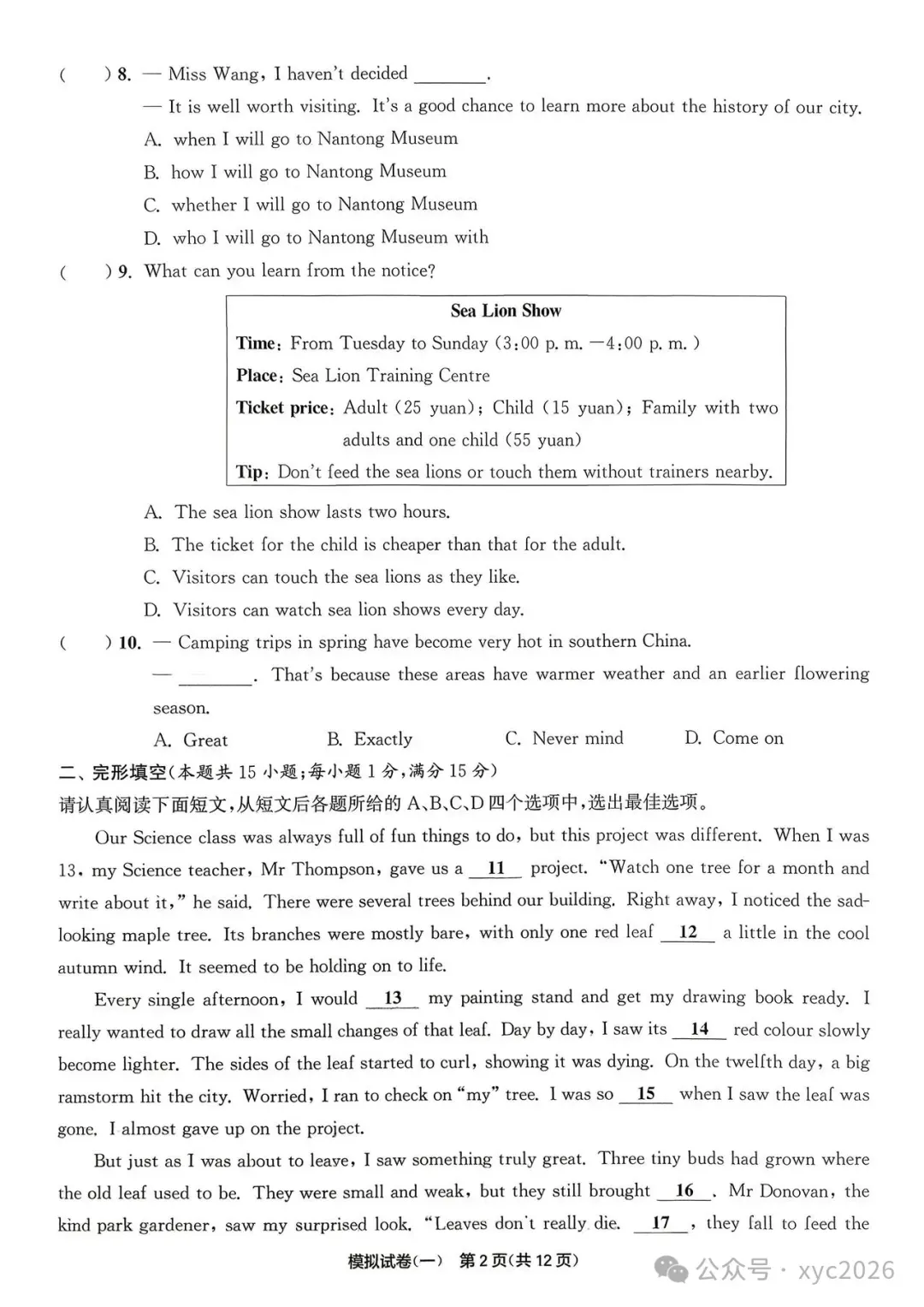 2026江苏宜兴中考一模英语试卷+答案(2026.4)
