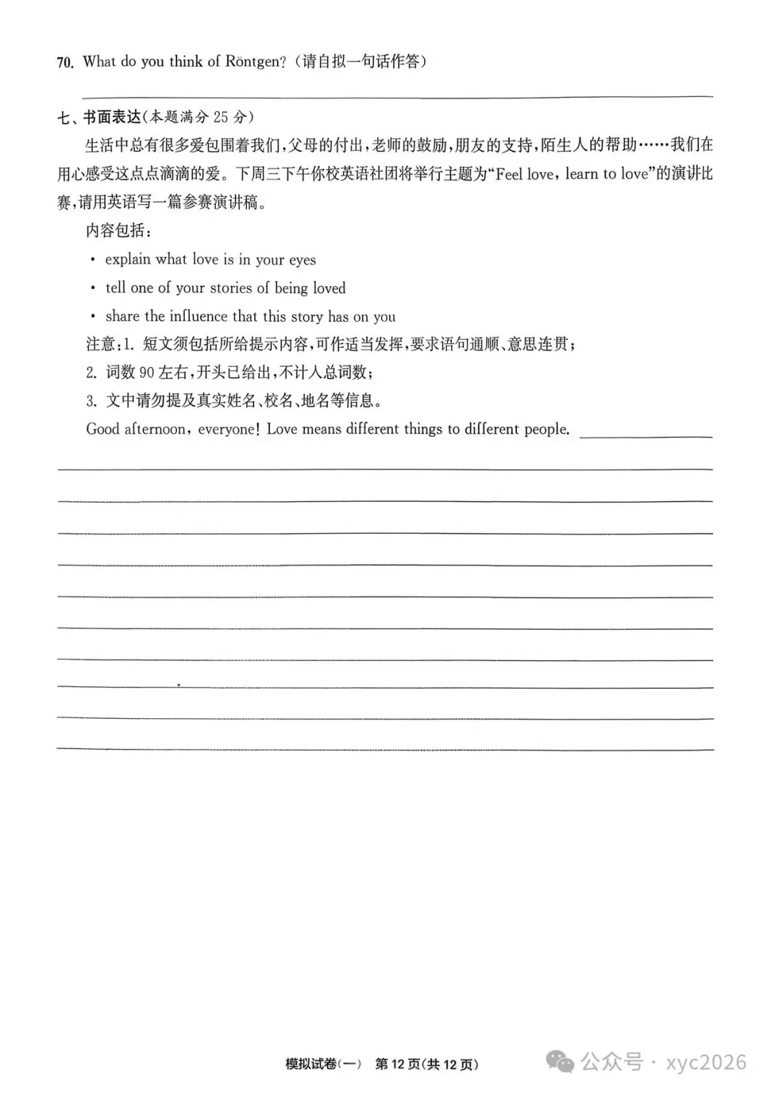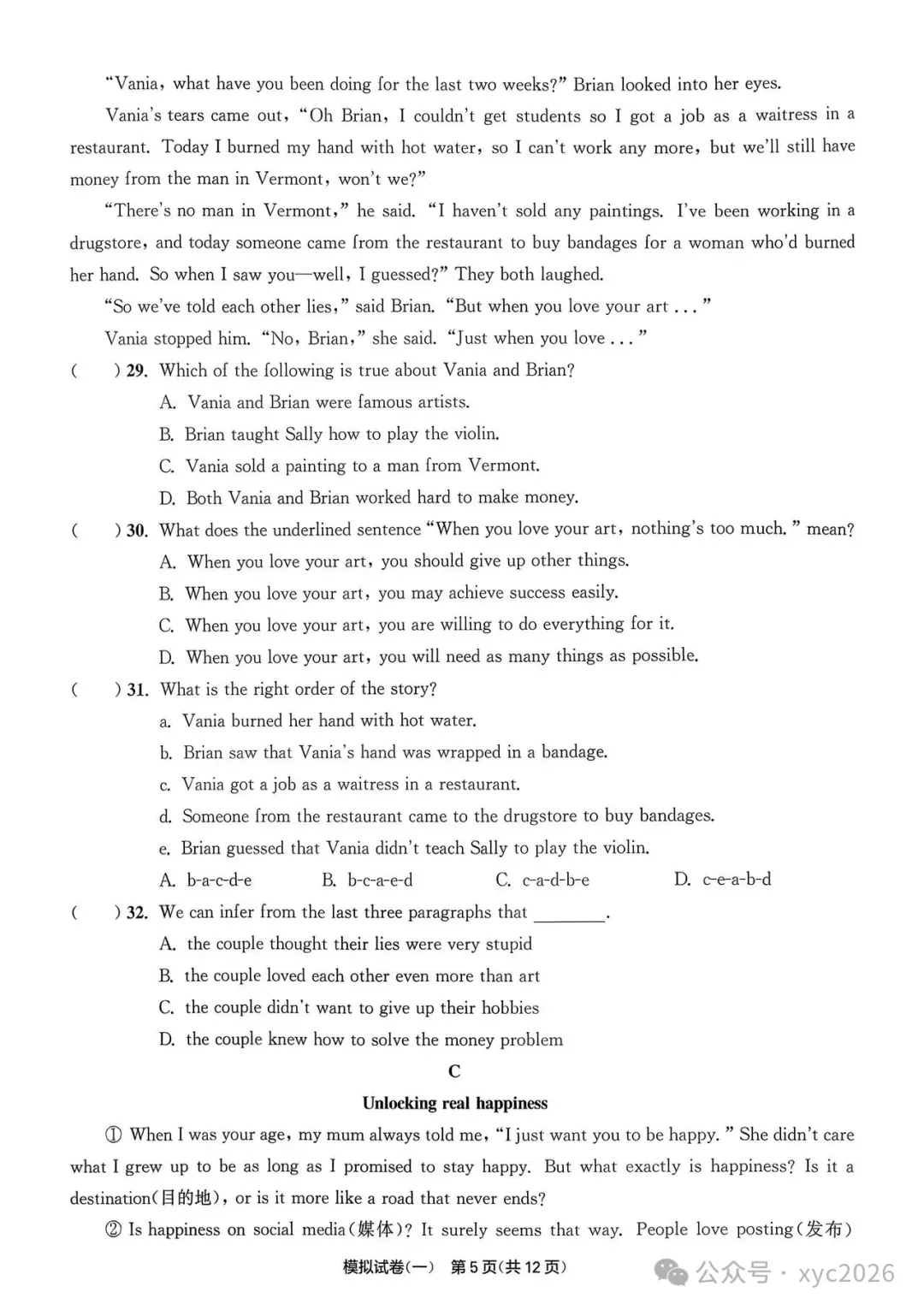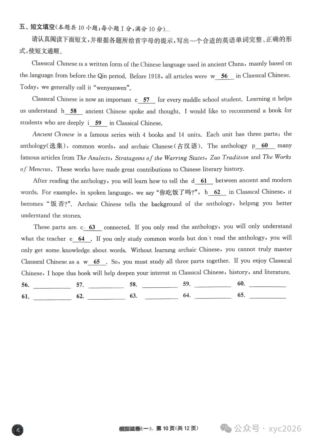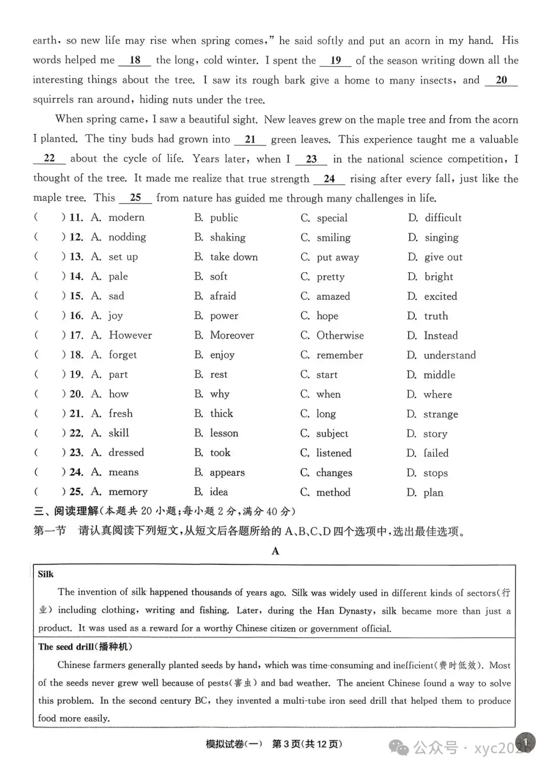 2026江苏宜兴中考一模英语试卷+答案(2026.4)