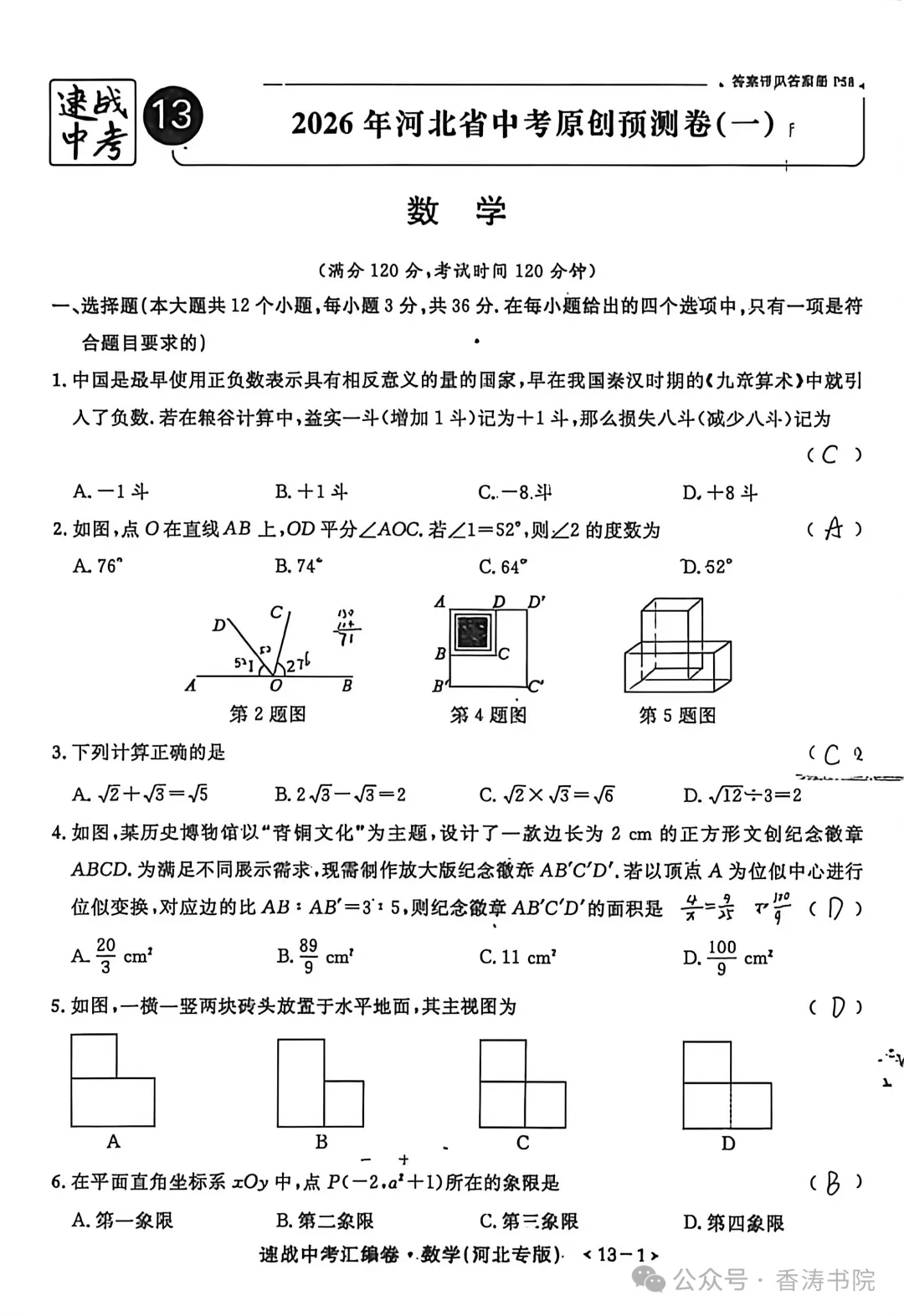 夸克「2026.4河北中考模拟原创预测一试卷」