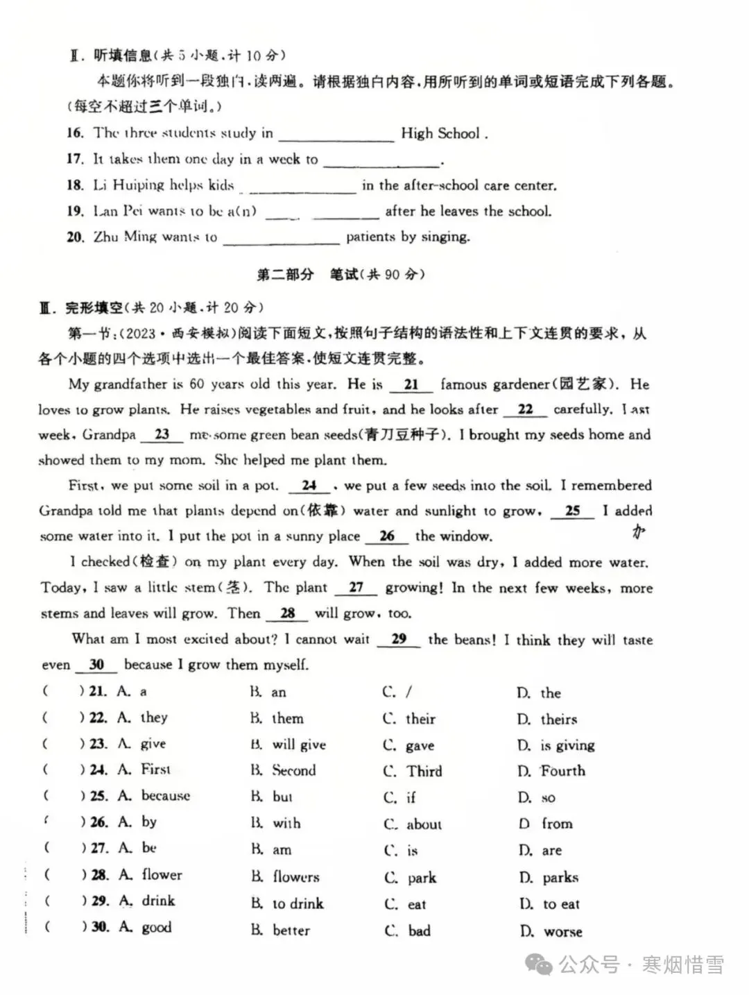 2026届上海市长宁区高三二模英语试卷(含答案)