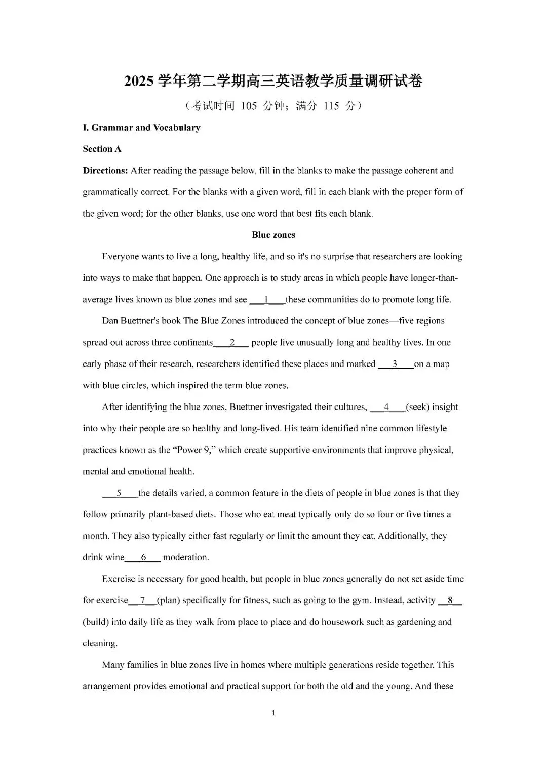 2026届上海市长宁区高三二模英语试卷(含答案)