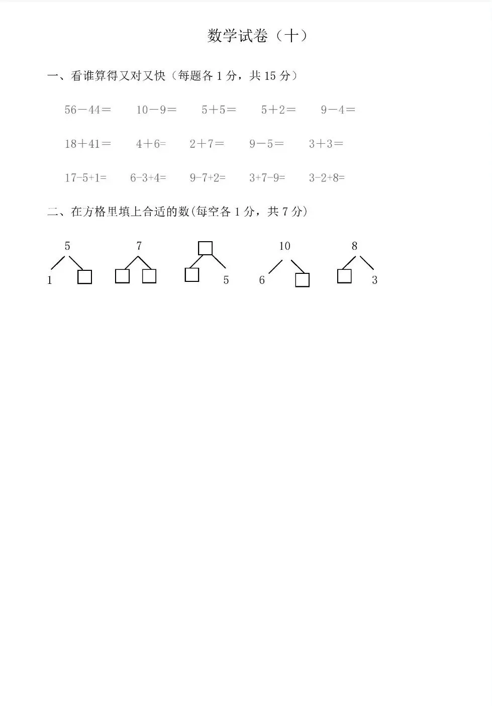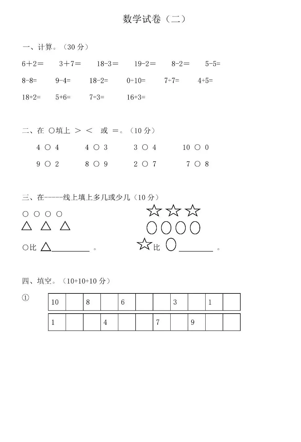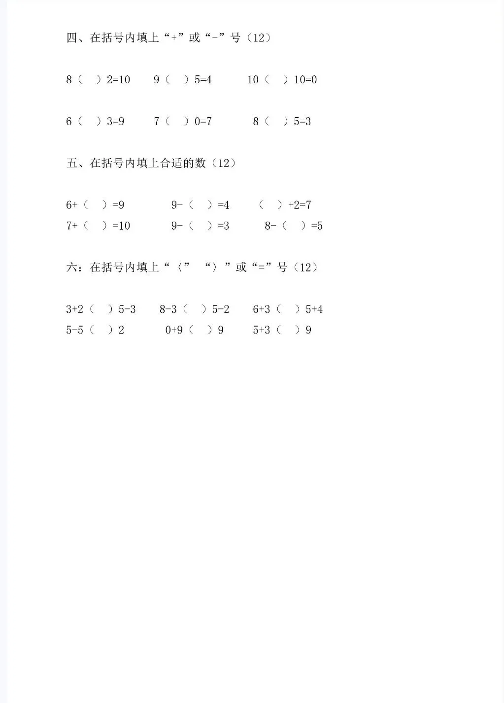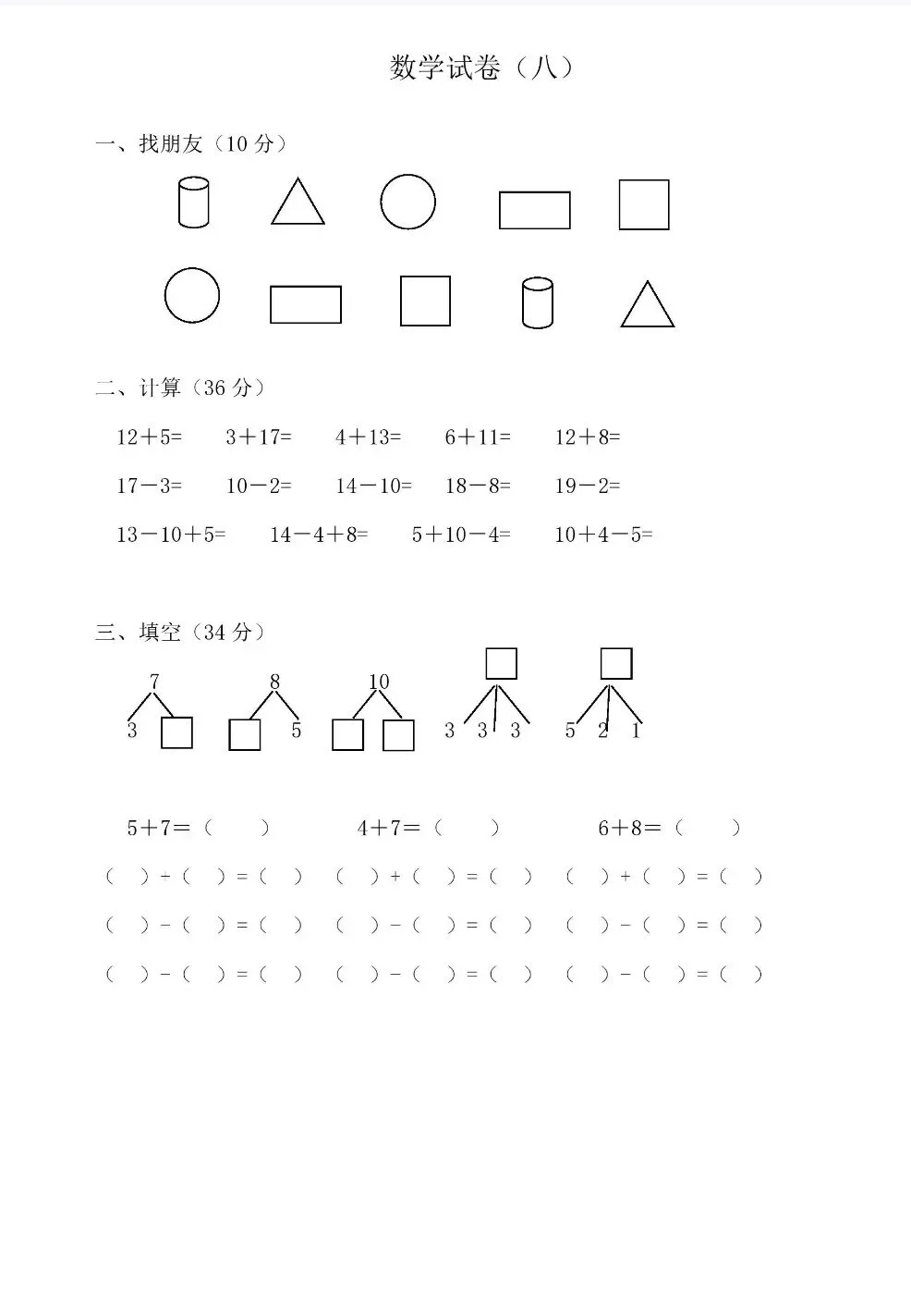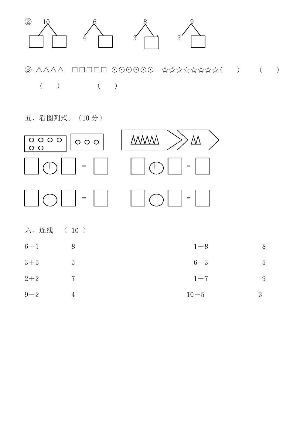 内容包括:数字书写、单双数、分解组合、顺序、序数、比较、看图列式、计算、填空、相邻数、应用题、图形、分类、时间、人民币等全部内容,综合练习35套。