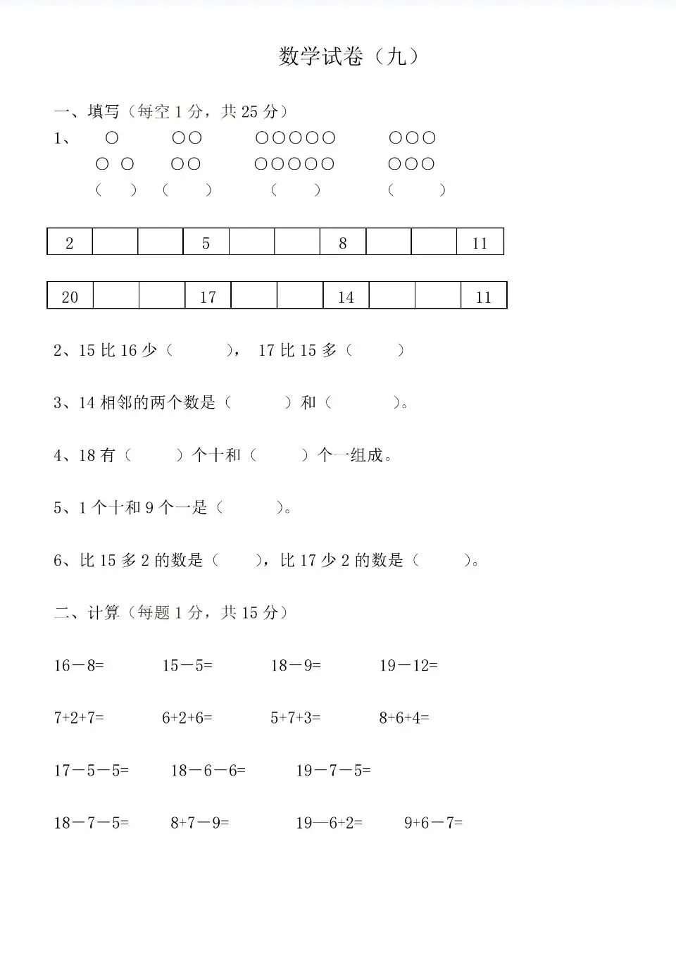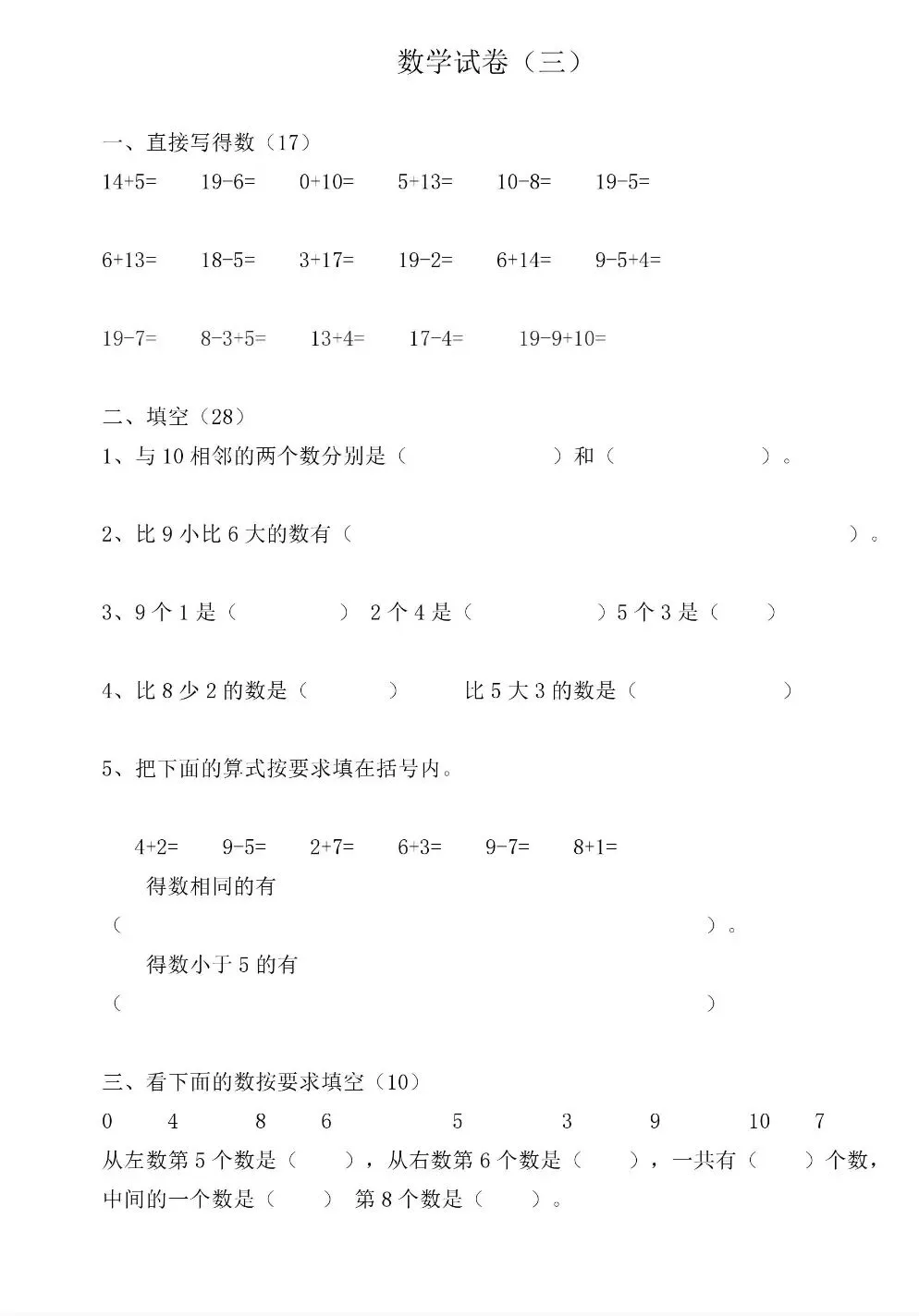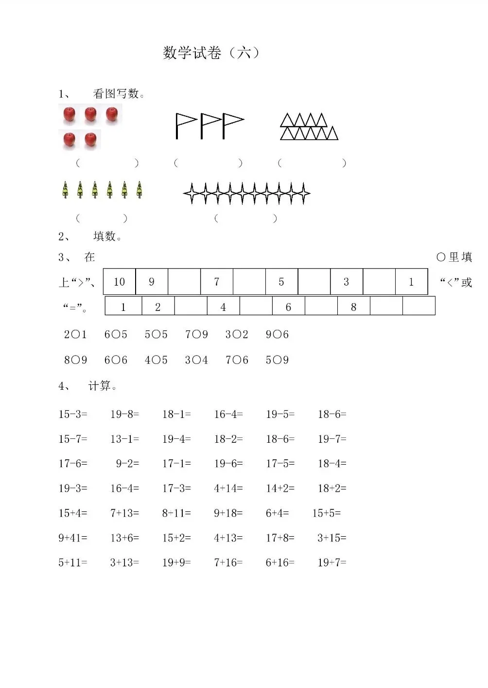 幼小衔接数学35套数学试卷,共61页,高清电子版可下载可打印。