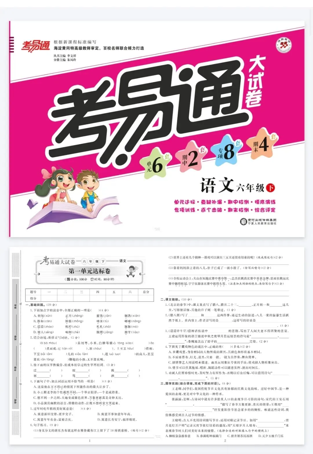 《考易通大试卷》人教版语文1-6年级下册丨pdf电子版,可下载打印,链接:https://pan.quark.cn/s/e1cd914c9bf0
